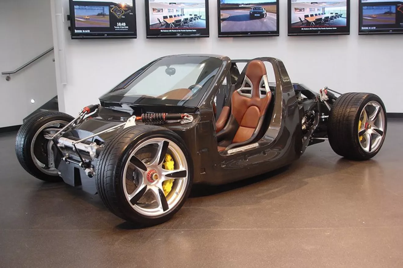 5. Carrera GT – это первый серийный автомобиль, применивший шасси-монокок из армированного углеволокном пластика. Это шасси основано на архитектуре выигравшего Ле-Ман 1998 GT1. Оно весит немногим больше 100 кг. Но пусть вес вас не смущает. Инженеры Porsche утверждают, что открытый Carrera GT жестче, чем закрытый гоночный 911 RSR.