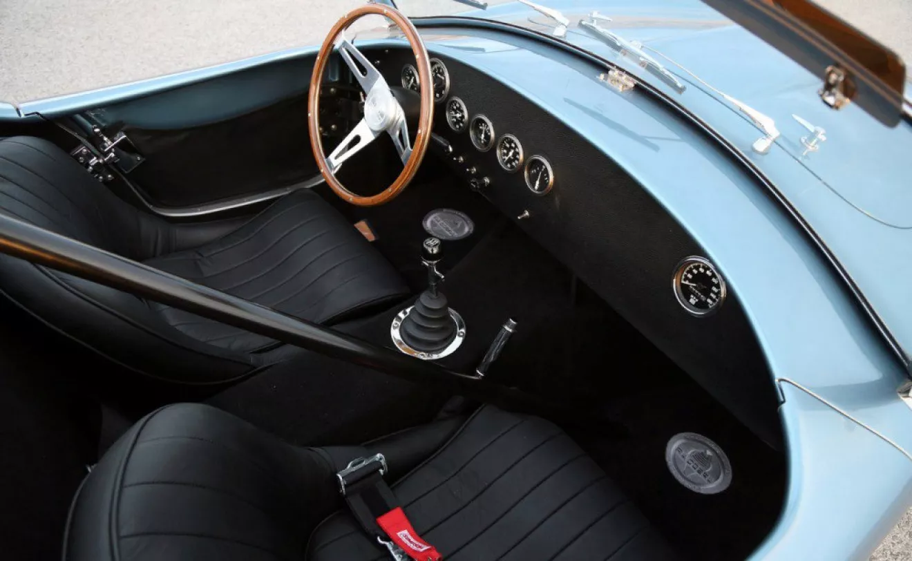 289 FIA Cobra, посвященную 50-летию гоночной модели.Каждый собранный вручную экземпляр окрашен в небесно-голубой цвет, именуемый «Viking Blue», а также получл классические белые, гоночные круги на кузове.