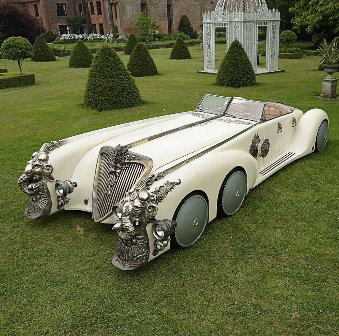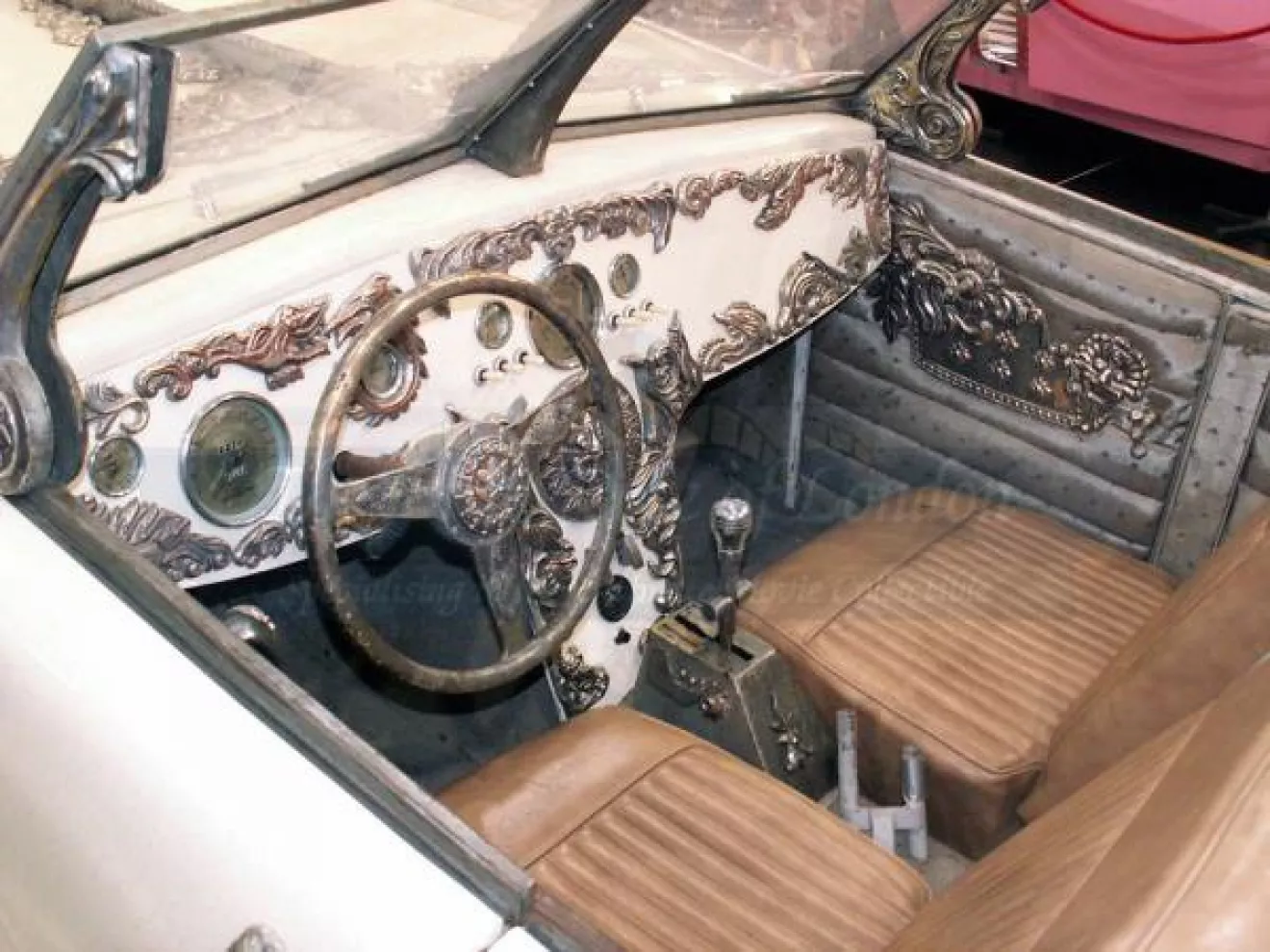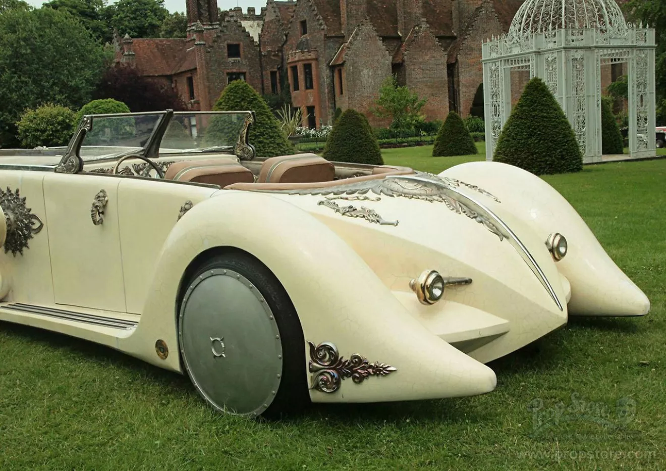 Машина была сделана, что называется с нуля, за основу было взято шасси Land Rover, и двигатель позаимствован тоже от этих автомобилей – Rover V8. Габариты впечатляют – в длину авто вытянулось в 6,7 метра, а в ширину имеет 2,74 метра. Для украшения белоснежного The Nautilus Carиспользовались металлические фигуры в викторианском стиле – это работа одного из членов съемочной группы. В салоне у «Наутилуса» царство бежевой кожи.