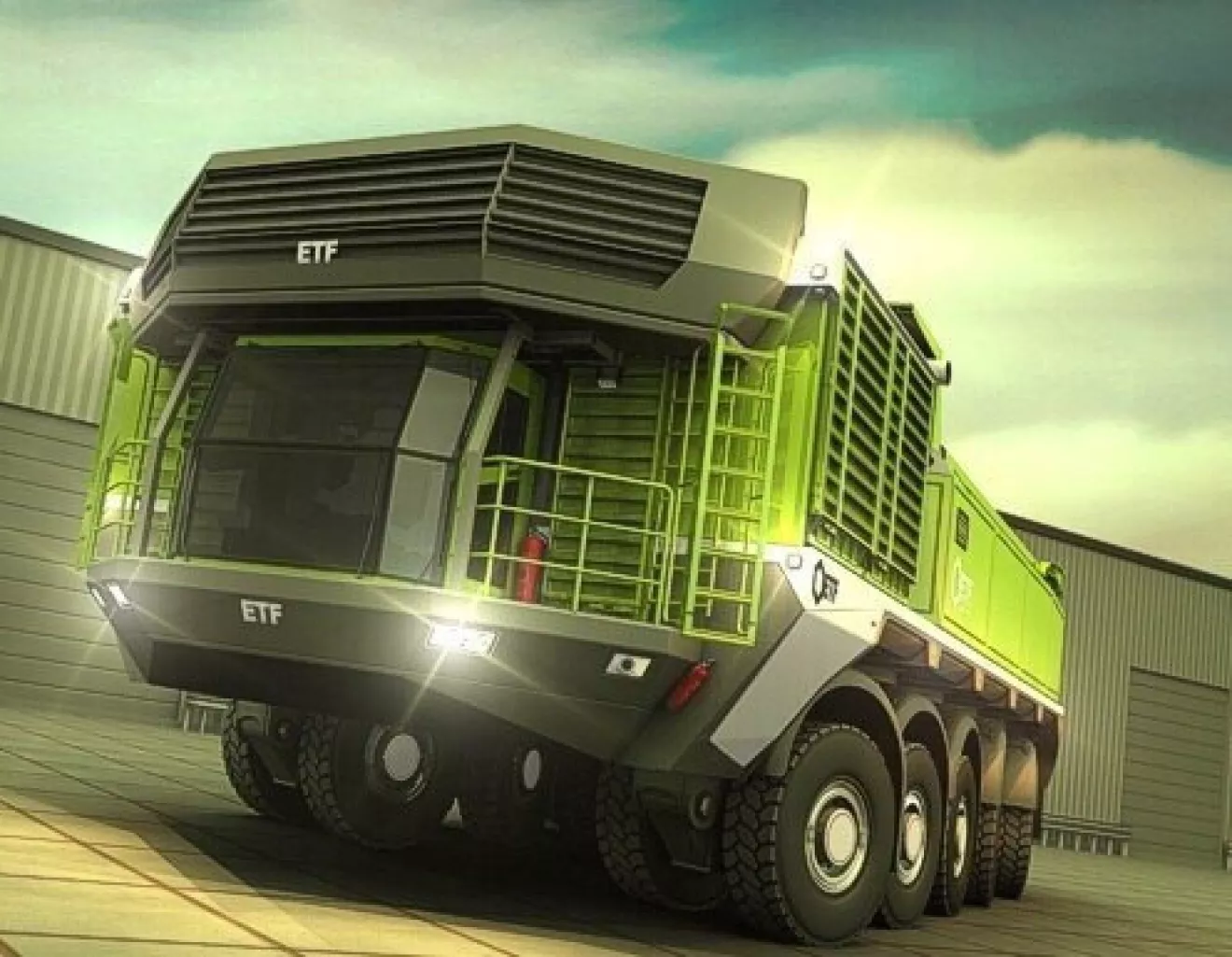 Грузовики ETF Haul Train в корне отличаются даже от самых больших грузовых автомобилей, которые можно встретить на дорогах и стройплощадках. Они разработаны с учетом суровых условий эксплуатации в горнодобывающей промышленности. Большое количество осей этих автомобилей и надежные узлы, имеющие многократный запас по прочности, позволяют перемещать груз, весом от 50 до 400 тонн, для сравнения, типичные карьерные грузовики, если не брать в расчет грузовики ультра-класса, способны перевозить от 35 до 100 тонн груза. А грузовики ультра-класса, имеющие весьма внушительные габариты и, как следствие, невысокую маневренность, требуют работы специально обученных водителей и наличия достаточно широких дорог.Все вышесказанное побудило специалистов германской компании European Truck Factory (ETF) заняться созданием "умного" карьерного грузовика-самосвала. В результате у них получилось транспортное средство, способное в зависимости от исполнения перевозить от 170 до 400 тонн груза. Вес груза равномерно распределяется на пять-семь осей автомобиля, каждая из которых имеет по четыре колеса. Активная система контроля колес "Central Tyre Inflation System" в режиме реального времени следит за дорожными условиями, контролирует и поддерживает давления в шинах автомобиля ETF Haul Train. При движении по мягкому грунту система автоматически снижает давление, а при движении по твердому и каменистому грунту — поднимает.