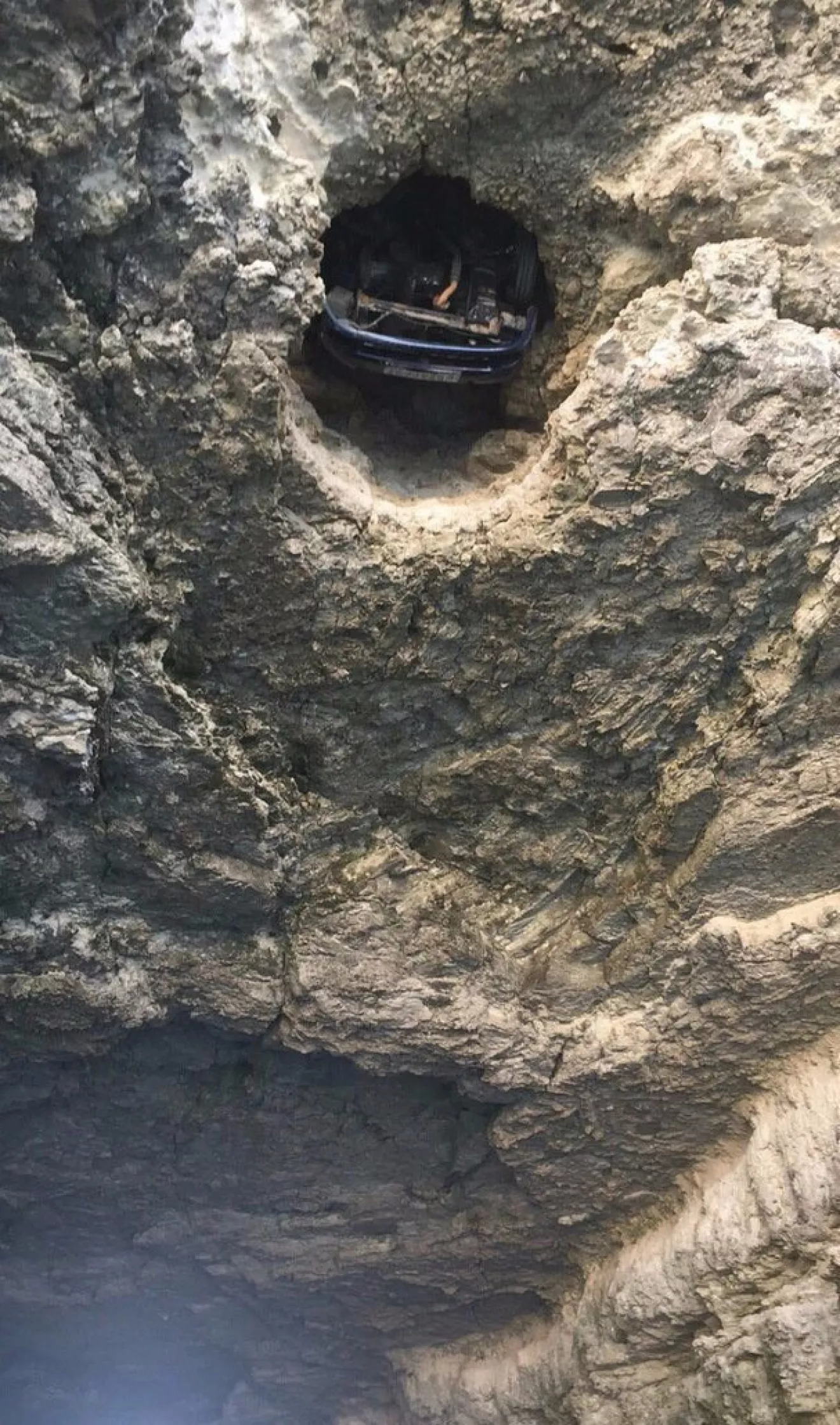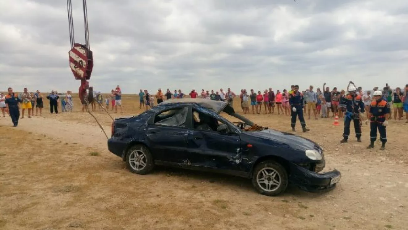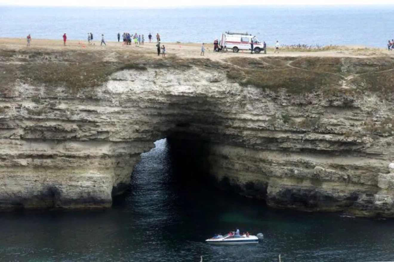 В Крыму автомобиль сорвался с обрыва и завис на скалах.Совершая разворот на автомобиле Daewoo-Chevrolet, водитель не справился с управлением, в результате чего авто сорвалось с обрыва в природный проем мыса Тарханкут глубиной 20 метров, машина застряла в проеме на глубине 10 метров. Водитель, продавив лобовое стекло, упал в море и не пострадал.Реально в рубашке родился.