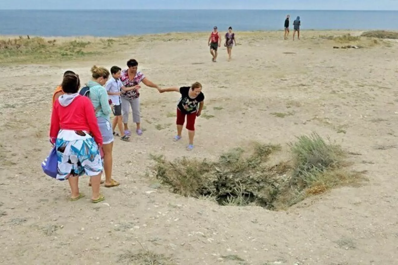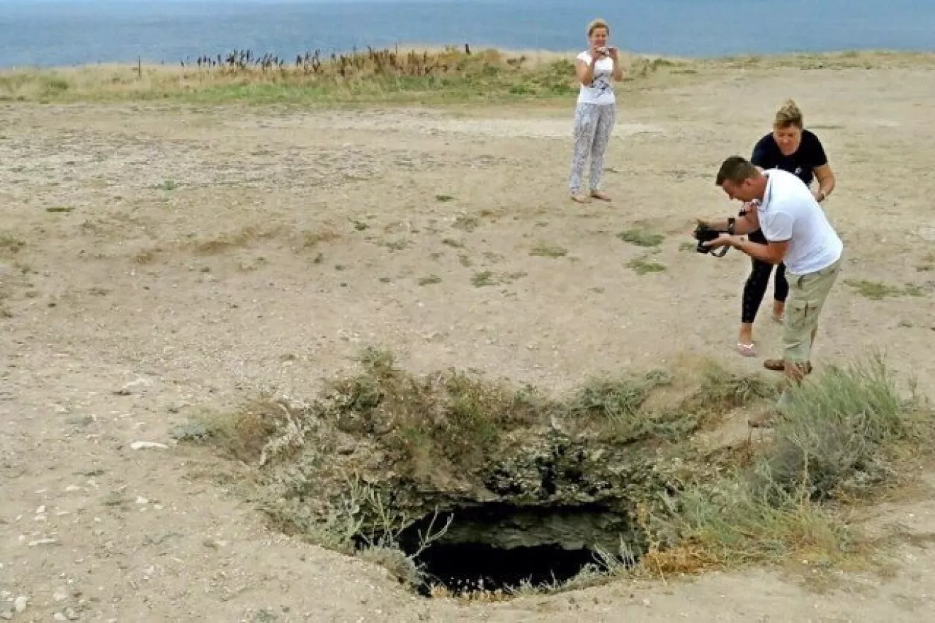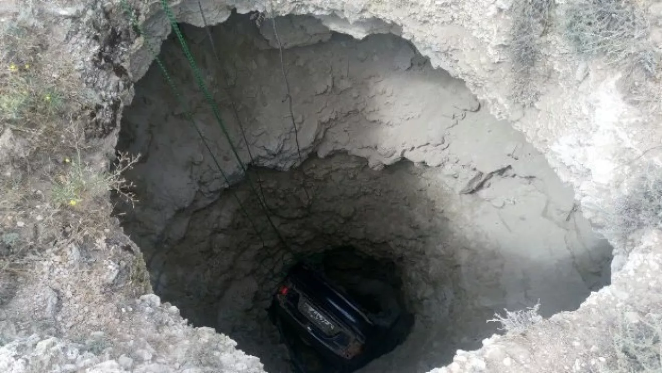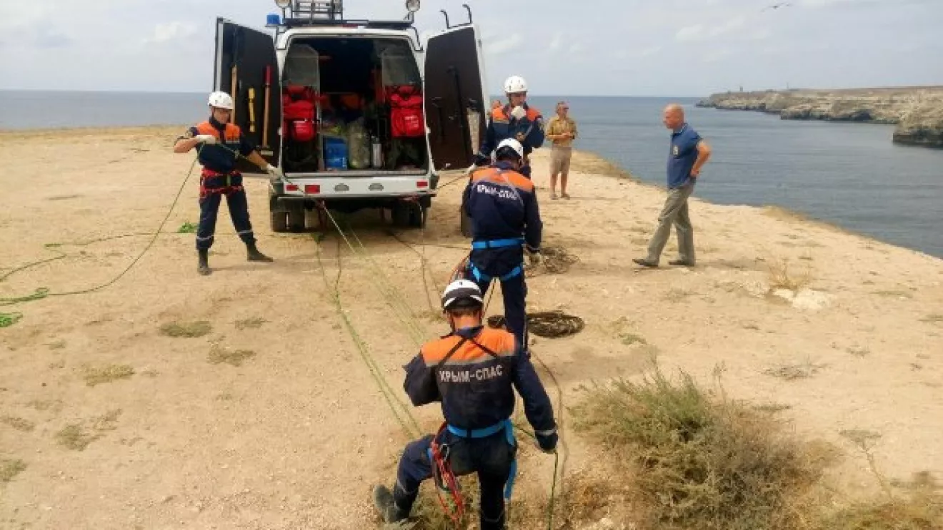 В Крыму автомобиль сорвался с обрыва и завис на скалах.Совершая разворот на автомобиле Daewoo-Chevrolet, водитель не справился с управлением, в результате чего авто сорвалось с обрыва в природный проем мыса Тарханкут глубиной 20 метров, машина застряла в проеме на глубине 10 метров. Водитель, продавив лобовое стекло, упал в море и не пострадал.Реально в рубашке родился.