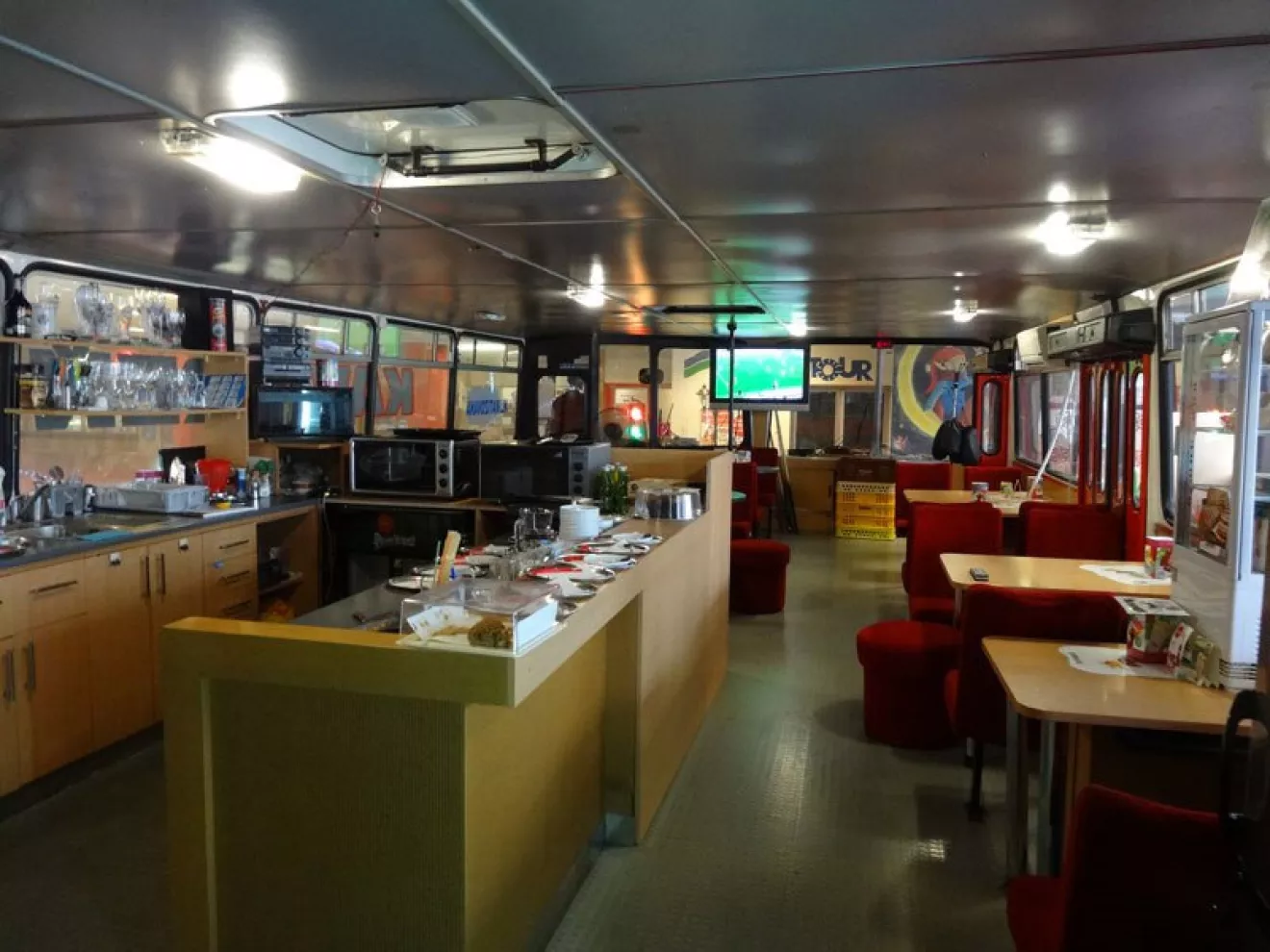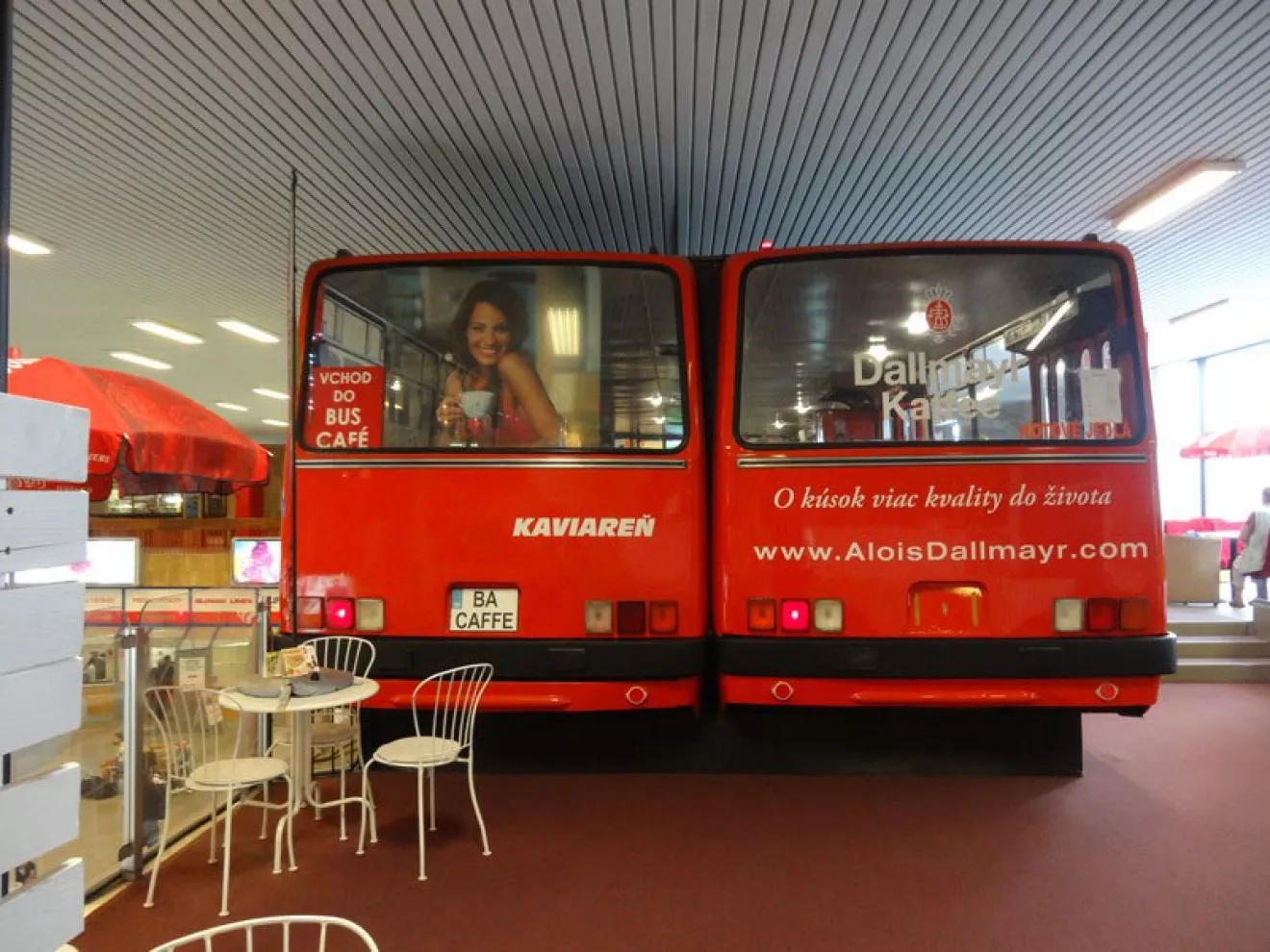 Шикарное кафе автовокзала Братиславы из двух автобусов Икарус 280