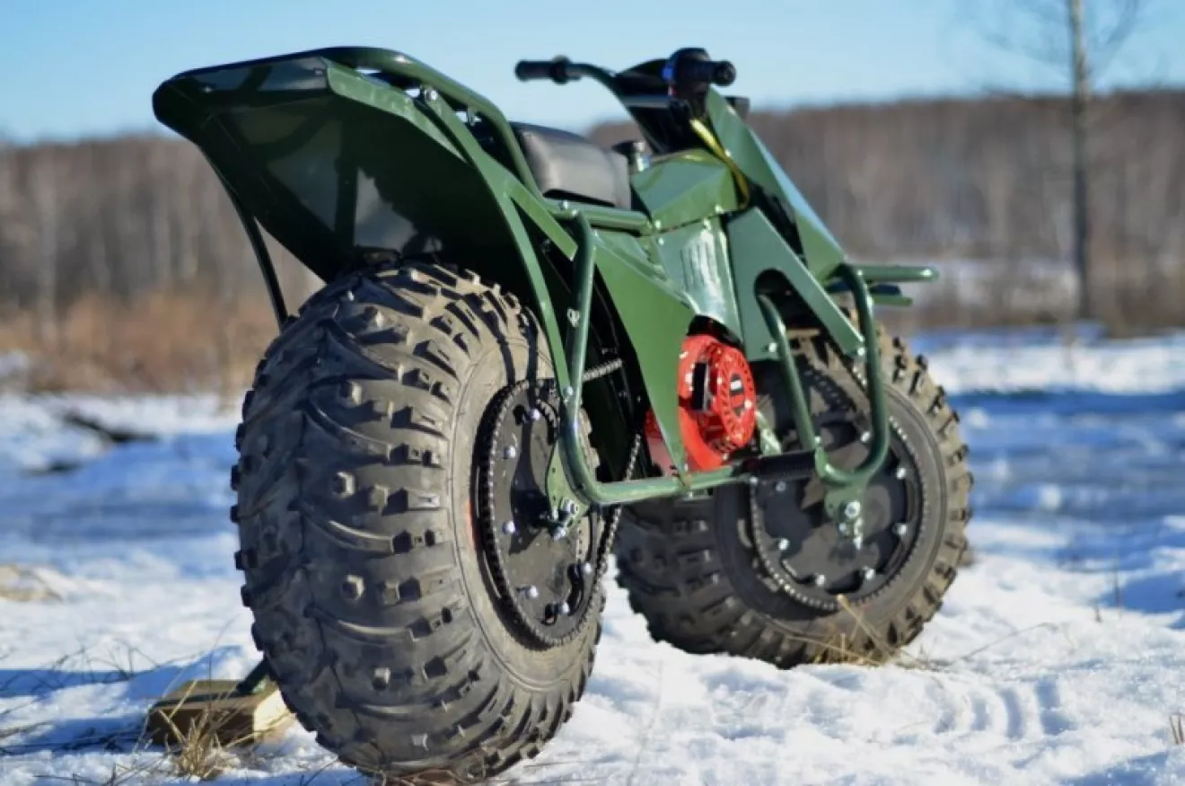 Мотоцикл использует шины класса 25х12 дюймов. Разрабатывался вездеход специально для езды по очень грязной и грубой местности. Он легко преодолевает любые преграды. Максимальная скорость достигает 35 км\ч. У коробки передач всего 2 передачи.