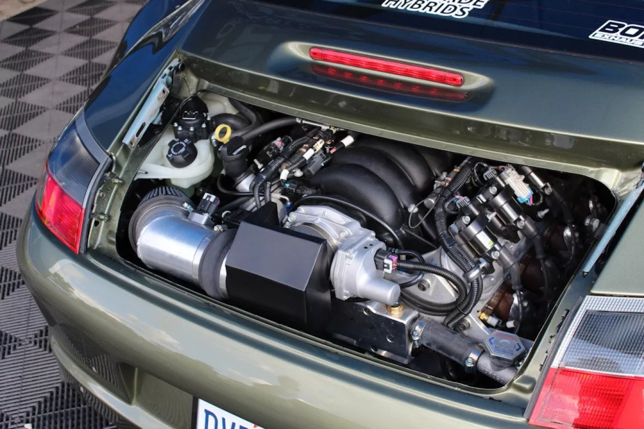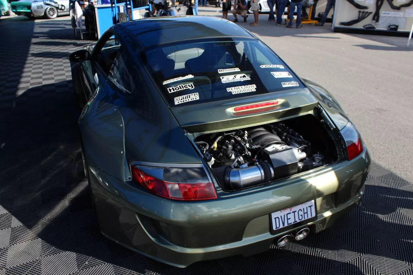 Porsche 911DV8 с 7,0-литровым V8 от Corvette По мнению ценителей наследия марки, Porsche 911 должен быть обязательно с оппозитной "шестеркой". Но за десятилетия жизни модели эти машины попадали в руки разных энтузиастов, некоторые из которых не считают радикальную замену мотора святотатством . В их числе и Ник Фузекис, директор по автоспортивному маркетингу ШИН Falken в США, справедливо назвавший свой проект на базе Carrera в кузове 996 "отклонением": в произношении имени 911DV8 игра слов — "V8" (прямой намек на тип двигателя) и "де -VI-ели "(собственно" отклоняться от нормы "по-английски). Сам автор так объясняет свою задумку:" Наблюдая эволюцию тюнинг-культуры и бум популярности Porsche 911, мы решили показать, что Carrera в забытом кузове 996 вполне можно превратить в надежную, доступную и быструю альтернативу более новым спорткарам. Porsche 911 с мощностью более 420 л.с. можно без проблем получить примерно за те же деньги, что и вдвое менее мощный Scion FR-S ". Действительно, поколение 996 (выпускавшееся с 1999 по 2004 год) ныне нечасто получает такую дозу внимания:. Более ранние +993 считаются последними классическими Porsche, а следующий кузов 997 дольше был на рынке и стал самым популярным в истории по объему продаж Справедливости ради, стоит отметить, что Ник Фузекис, мягко говоря, далеко не первый, кто установил V8 под капот Porsche 911. есть даже машина 1981 года, в которую впихнули 8,2-литровый биг-блок Cadillac. Но кроме всех этих отдельных единичных экспериментов есть компания Renegade Гибриды из Лас-Вегаса, с 1983 года продавшая более тысячи комплектов для свапа смолл-Chevy в блоков Porsche 911 всех поколений. Они формулируют свою миссию просто: ". Мы возвращаем Porsche беззаботную, доступную и приносящую радость эксплуатацию Для этого мы оставляем все хорошие стороны этих машин — управляемость, тормоза и внешний вид, но добавляем к ним большую и надежную мощность". По американским меркам, оппозитные моторы Porsche достаточно дороги в обслуживании и тюнинге, а отдача от вложений не впечатляет. Кроме того, по современным меркам классические 911 уже откровенно тихоходны, но по-прежнему выглядят солидным соперником для новых спорткаров. Кстати, такая же мотивация и у тех, кто меняет родные британские двигатели Jaguar XJ на Chevrolet V8 к печали пуристов — однако, пока эстеты грустят, более изобретательные энтузиасты ездят на 400-сильных Jaguar, тратя при этом на ремонт и обслуживание в несколько раз меньше . С появлением в 1997 году LS-семейства V8, У невадских мастеров появилось еще больше поводов для продаж сВОИХ свап-комплектов, так как полностью алюминиевые двигатели Chevrolet еще и весят примерно столько же, сколько атмосферные "боксеры" Porsche, при этом штатная мощность вырастает с "300" около "до 400 свыше". Это больше, чем у заводского твин-турбо от Porsche, который весит на 100 кг больше, а стоит в три раза дороже нового 6,2-литрового LS3. Базовый набор для установки Lsx-мотора в кузов стоит $ 996 3895 и включает в себя все необходимые подушки двигателя и их крепления, адаптеры для подключения всех систем (топливо, охлаждение, электрика, панель приборов), крепления для навесного и комплект сцепления, позволяющее совместить LSX с КПП от Porsche. Гибриды Renegade Опционально предлагают электрический усилитель руля ($ 1295) и электрическую помпу ($ 1195). И, разумеется, свежеустановленный V8 можно тюнинговать дальше по прекрасно известным рецептам, но серийная 6-ступенчатая трансмиссия Po