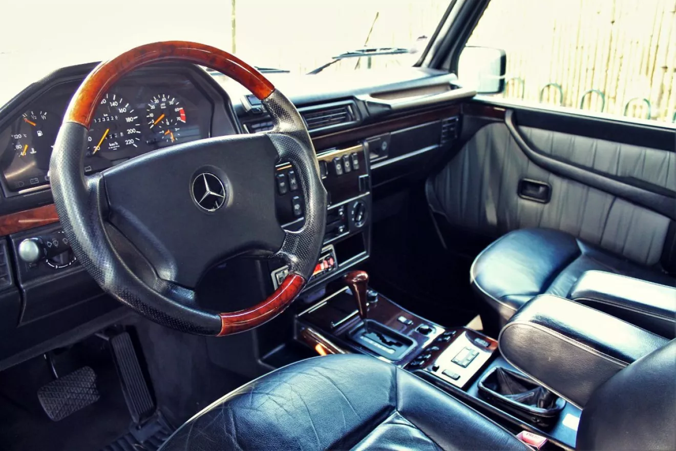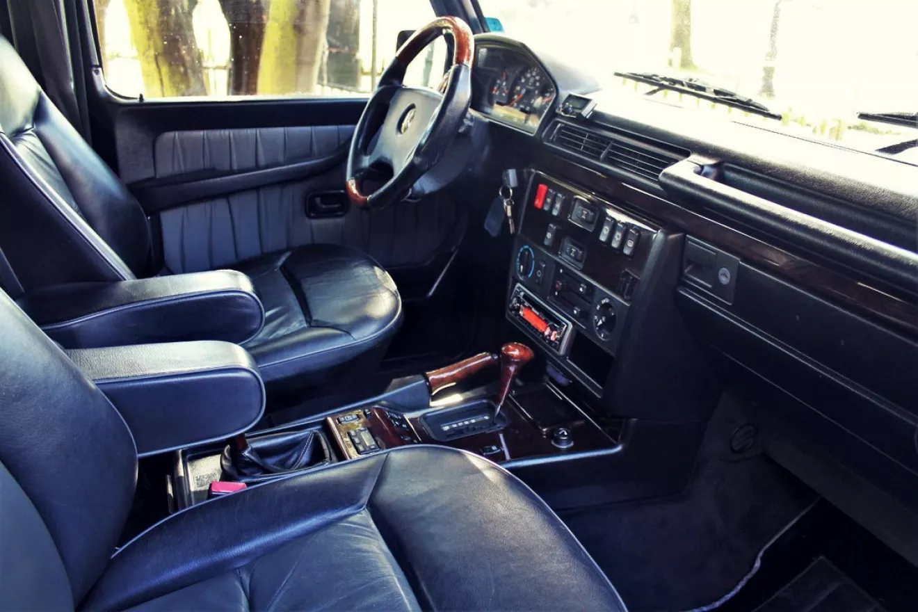Количество сияющих Геликов на центральных улицах города, манера езды их хозяев и громогласный рык мощных моторов сложили имидж G-класса как брутального и при этом гламурного внедорожника (редкое сочетание!), с обязательным двигателем V8 под капотом. Атмосферным, компрессорным или турбированным, но при этом не менее 5 литров в объеме. Однако, так было не всегда. Первое поколение G-класса с индексом W460 и W461 (первый — для гражданских лиц, второй — для спецслужб) имело не только спартанский интерьер, но и двигатели, у которых мощность отдавалась в угоду экономичности и простоте . Самым производительным был 280GE с его 156 л.с., а уж о дизелях объемом 2,4 литра и говорить не стоит. Но даже вышедший в 1989-м году кузов W463 не сразу изменил ситуацию. Первые машины выпускались исключительно с рядными "четверками" и "шестерками". Самой мощной из ранних версий был G320 с двигателем M104, который выдавал на Гелике 211 л.с. и выпускался с 1994 года. Первый G500, с культовым 113-м двигателем V8 и мощностью 296 сил появился только в 1998 году … Однако был в истории G-класса один автомобиль, о котором не писали в каталогах и рекламных проспектах . Автомобиль, который выпускали исключительно под заказ и который предлагался только избранным клиентам . Автомобиль, который планировалось выпустить количеством не более 500 экземпляров. 1992-й год. Продажи нового G-класса в кузове W463 идут хорошо. И люди в Мерседесе задумываются, а не возвести ли им роскошь в абсолют. То есть — взять самую топовую комплектацию 300GE, внедрить в нее огромный V8 и предлагать своим богатым клиентам, владельцам S-класса, за почти 200 тысяч немецких марок. Шаг этот был в определенной мере рискованный, поэтому заказы принимались по принципу "утром деньги, вечером стулья". То есть — никакой рекламы, строго ограниченный выпуск по уже принятым заказам. Когда первые клиенты подписывали контракт, машины еще даже не существовало в природе! Итого, в течение следующей пары лет (93-94 гг.) Было выпущено 446 машин, которые мы теперь знаем как 500GE. Автомобиль оснащался бензиновым V8 мощностью 241 л.с., разгон до сотни у такой машины занимал 10,5 секунд, а максимальная скорость составляла 175 км / ч. Занятный факт: M117 двигатель Мерседес прекратил выпускать в 1992 году, на его смену пришел двигатель M119. 500 Однако двигателей сохранили как раз для планируемого 500GE, потому что новый M119 не помещался в подкапотном пространстве G-класса. Внешне машину отличали новые диски, 16-дюймовые "ромашки", которые затем будут ставиться на все модели Гелендвагенов и приобретут статус культовых . Для 500GE был разработан специальный цвет "Аметист", в этот же цвет окрашивались расширители колесных арок. Это была действительно роскошная комплектация, если вспомнить, что Гелики тех лет в "базе" вообще не имели расширителей и порогов. Но настоящая роскошь скрывалась внутри. Здесь даже рычаг АКПП и набалдашник ручного тормоза были выточены из цельных кусков дерева . Впрочем, в интерьере в глаза бросалось другое отличие. А именно — отсутствие кнопки включения блокировки переднего межколесного дифференциала. Это не обман зрения, действительно, блокировкой переднего моста 500GE не оснащался. Стало ли причиной тому беспокойство инженеров Mercedes, что мощный 240-сильный V8 может сорвать привода? Вряд ли, ведь в 1998-м году выходит G500 296 л.с. мощностью, и там все три блокировки на месте. Скорее вс