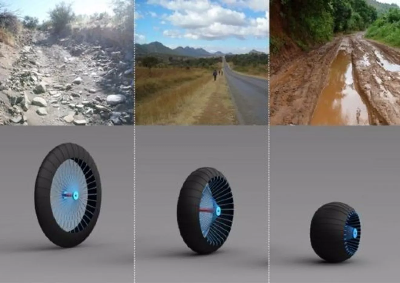 Африканский студент Ackeem Нгвенью, обучающийся британском Королевском колледже искусств, создал концепт колеса, которое может изменяться для увеличения проходимости. Особенности конструкции позволяют изменять ширину покрышки, подстраиваясь под актуальные условия.