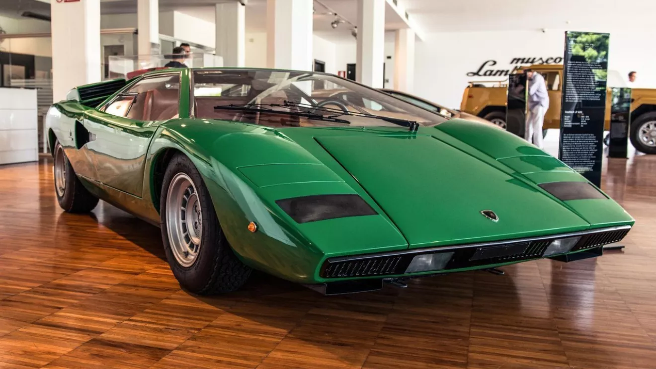 Это первый прототип автомобиля, который мы знаем как Countach. И это первый Lamborghini с легендарными дверями. Здесь тот же монструозный V12 от Miura, выдающий 380 лошадей, но на этот раз его установили продольно.