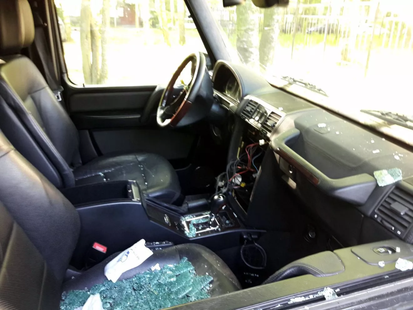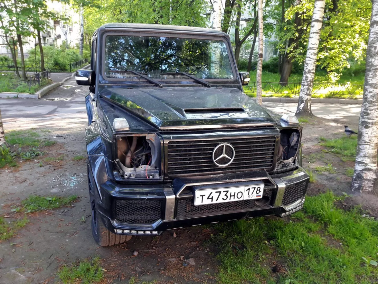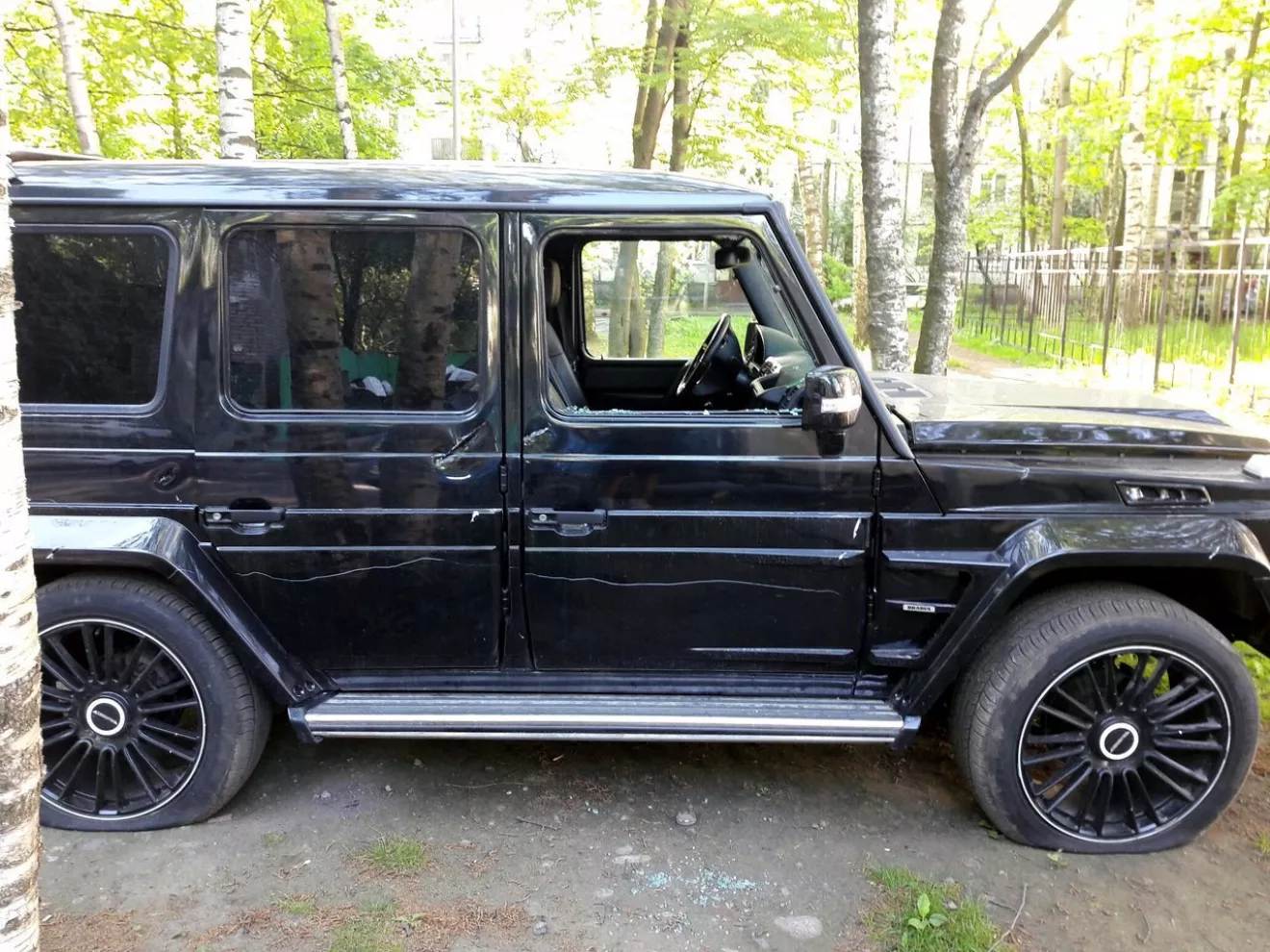 Вот нашел на просторах интернета жуткое зрелище, насколько это правда решать вам.Жители отомстили за парковку на газоне, полностью распотрошив салон Гелика.На днях в СПб некие вандалы расправились с припаркованным Брабусом . Ну не любят у нас газонопарковщиков … Со слов хозяина, он приехал в 23,00 и припарковался во дворе у школы. Он сам москвич и приехал из столицы по делам . Сожалеет о том, что пришлось встать на газон, но не считает это местью за порчу природе, так как профессионально сняли оптику, мультимедиа и зеркала. Также сняли колесо запасное. В добавок машину порубили топором …РS.Не ставьте машины на газоны, берегите свое авто, за репост спасибо.Всем удачи))
