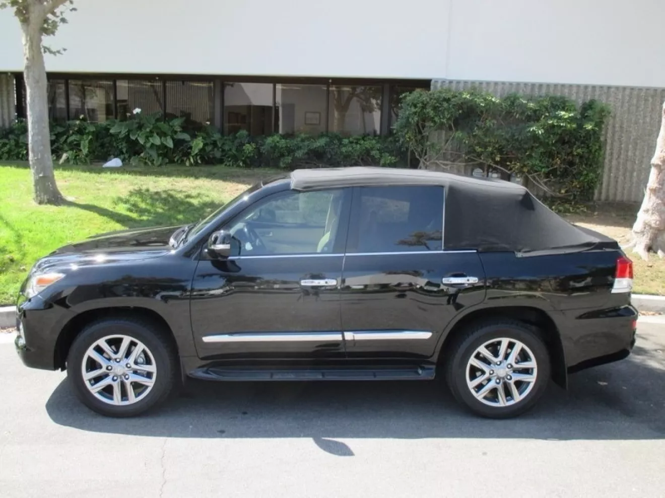 За 1 миллион и 300 тысяч дирхам можно приобрести такой автомобиль в кувейтском ателье автодизайна. В переводе на более понятные цифры, это около 350 тысяч американских долларов. Не забудьте добавить таможенные расходы.Предусмотрены даже трогательные чехольчики на мониторы — от песка и пыли или глаз чужих. Если прищуриваться и не отводить взгляд в сторону кормы, не так страшно выглядит. Хотя производителем и значится вроде бы как американское ателье Newport Convertible Engineering, нет никаких сомнений, что инициаторами подобной версии и первыми клиентами станут именно покупатели из жарких стран и с высокой плотностью нефтедобычи на размер территории. В принципе, подобная поделка была ожидаема, так как предыдущий кузов LX уже тоже попадал под ножи профессиональных создателей Франкенштейнов без крыш. Если вам интересно посмотреть на другие шедевры, которые изначально не предусматривались производителем как кабриолеты, но компания NCE решила иначе.