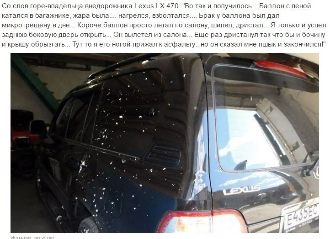 Баллон с монтажной пеной взорвался в Лексусе ))