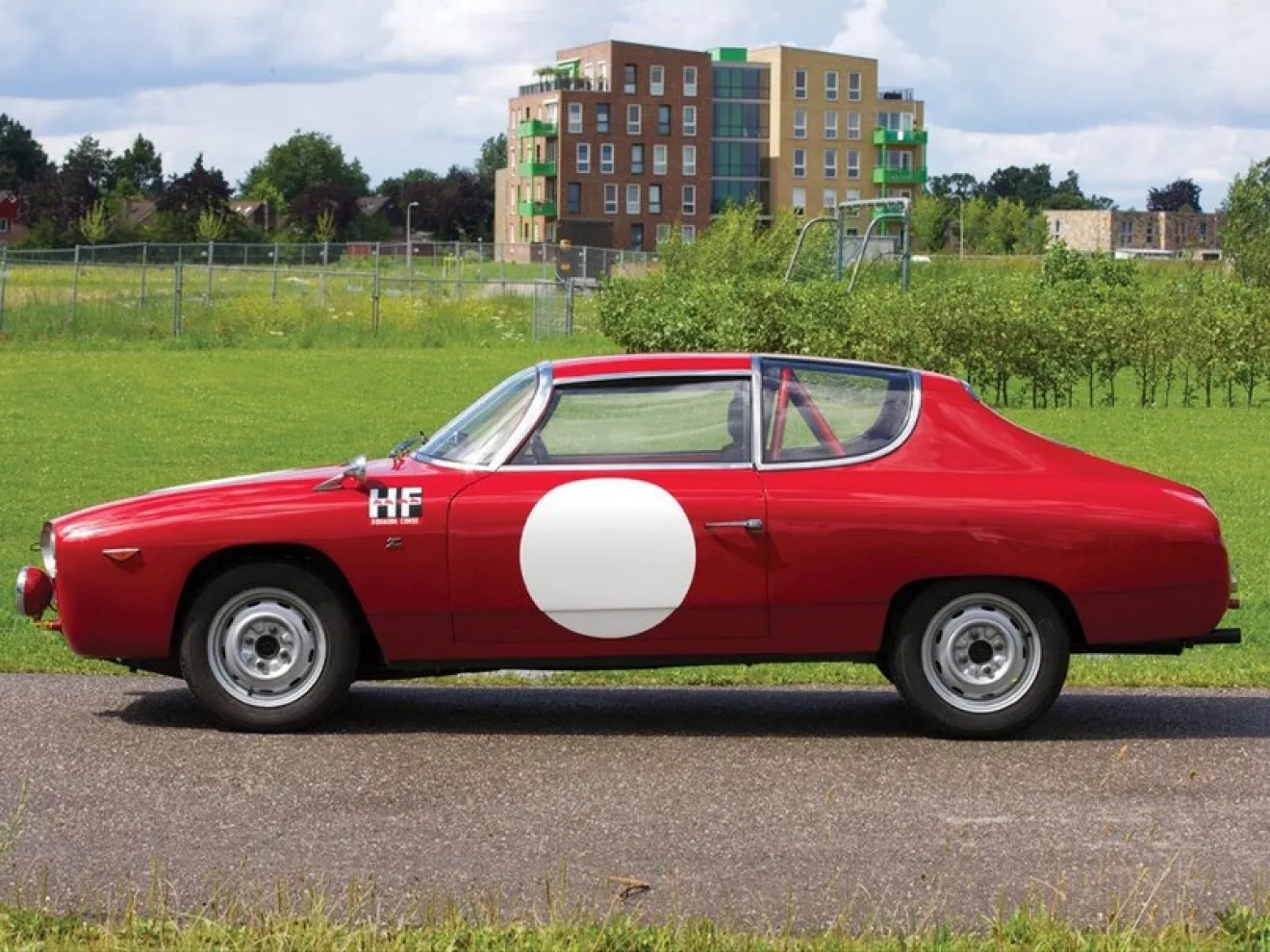 Кузов такой формы мог быть только от Zagato. Никто другой не сделал бы подобную необычную облицовку радиатора или боковые стекла, заходящие на крышу .Новая модель — и снова сенсация! Lancia Flavia, сконструированная профессором Фессия (Fessia), полностью отошла от всех прежних традиций компании. На новом автомобиле не только использовались горизонтальный оппозитный двигатель и дисковые тормоза на всех колесах. Flavia стала первой итальянской моделью с передним приводом. Интересной оказалась и независимая передняя подвеска на поперечной рессоре. Огромное разочарование на первых седанах вызвал механизм переключения передач на рулевой колонке.