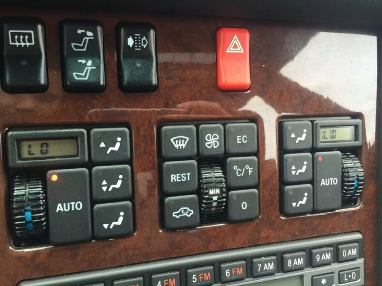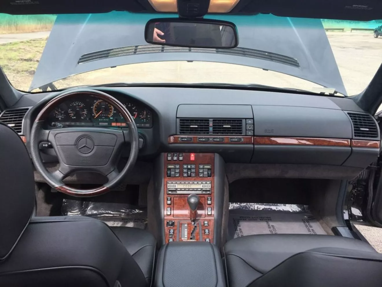 Этот экземпляр в очень богатой комплектации: есть телефон, климат-контроль, CD-проигрыватель Becker с чейнджером в багажнике, 4-зонный климат-контроль, передние и задние сиденья с электрическими регулировками и еще много других недешевых платных опций, которыми можно было дополнить "начинку" авто в 1992-м году.