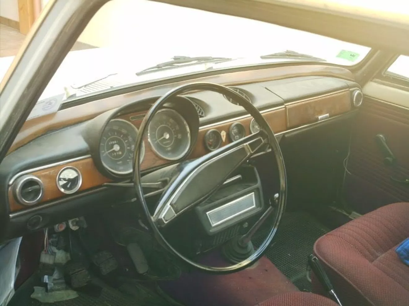 Профиль боковых панелей точно такой же, как у 124 (2101), морда — фактически такая, с которой потом наши инженеры слепили 2105, задние фонари а-ля асскона, приборка своя, мотор… Э, слышь, мотор, а где карбюратор? А нету карбюратора. Мотор дизельный