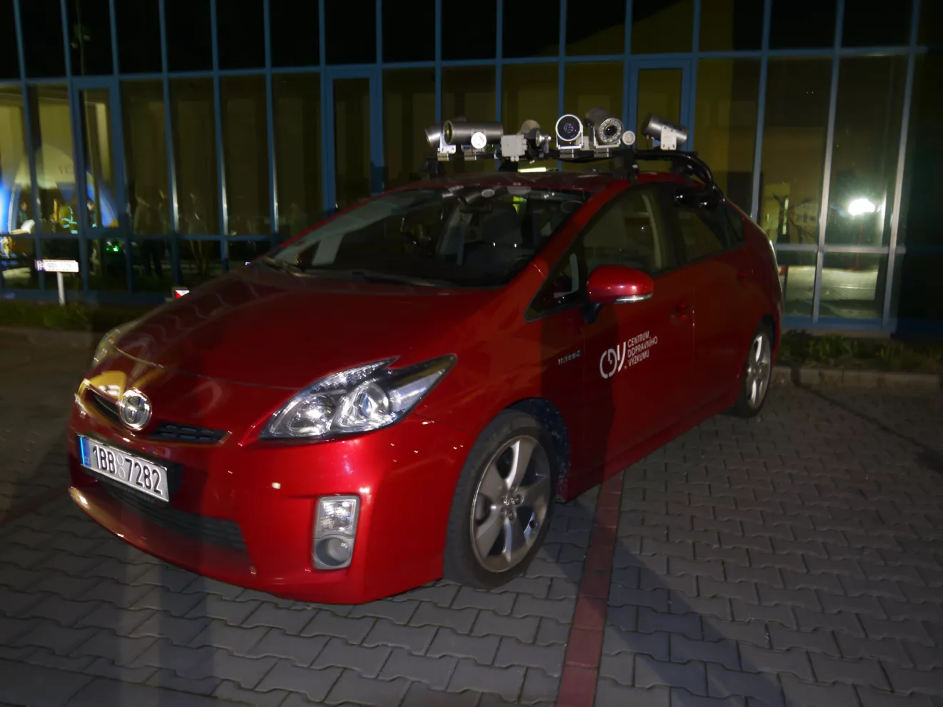 Вот такой автомобиль с камерами на крыше встретил сегодня. Машина принадлежит местному центру исследования транспорта. Машина сканирует номера припаркованных автомобилей, сверяет их с базами данных владельцев автомобилей, их адресами проживания. Исследуют оборачиваемость парка автомобилей в конкретном месте. Машину используют при организации платных парковок.
