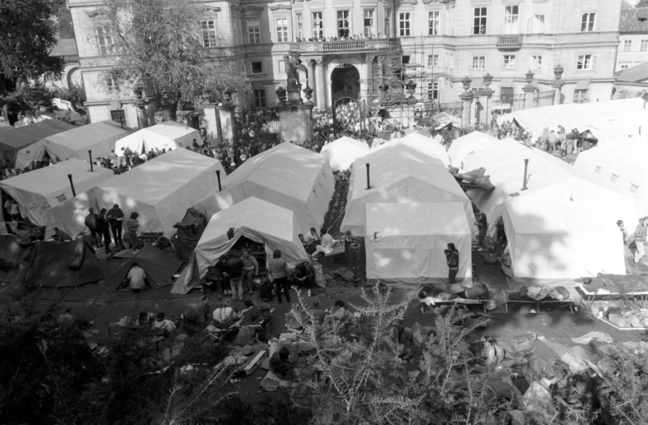 К концу сентября в посольстве ФРГ в Праге находилось до 4000 беженцев. На территории посольства был развернут палаточный лагерь. 30-го сентября между ГДР и ФРГ была достигнута договоренность, чтобы эти люди могли выехать в ФРГ. После этого решения через посольство ежедневно проходило до 4000 немцев желающих выехать в ФРГ. Чтобы остановить этот поток, 4 октября ГДР ввела визовый режим с Чехословакией. Менее чем через месяц визы отменили, и в первый же день после отмены новая волна из 3000 человек накрыла посольство в Праге. К этому времени уже был налажен конвейер по приему людей, выдаче документов и отправке их поездами в ФРГ.
