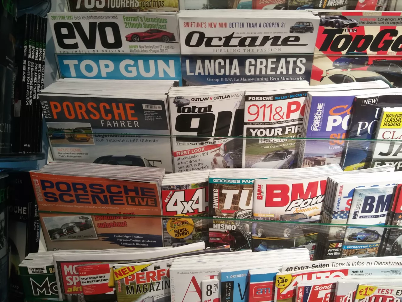 Небольшой киоск с журналами в аэропорту Вены. Я насчитал 6 разных журналов посвященных современным и классическим Порше :-)