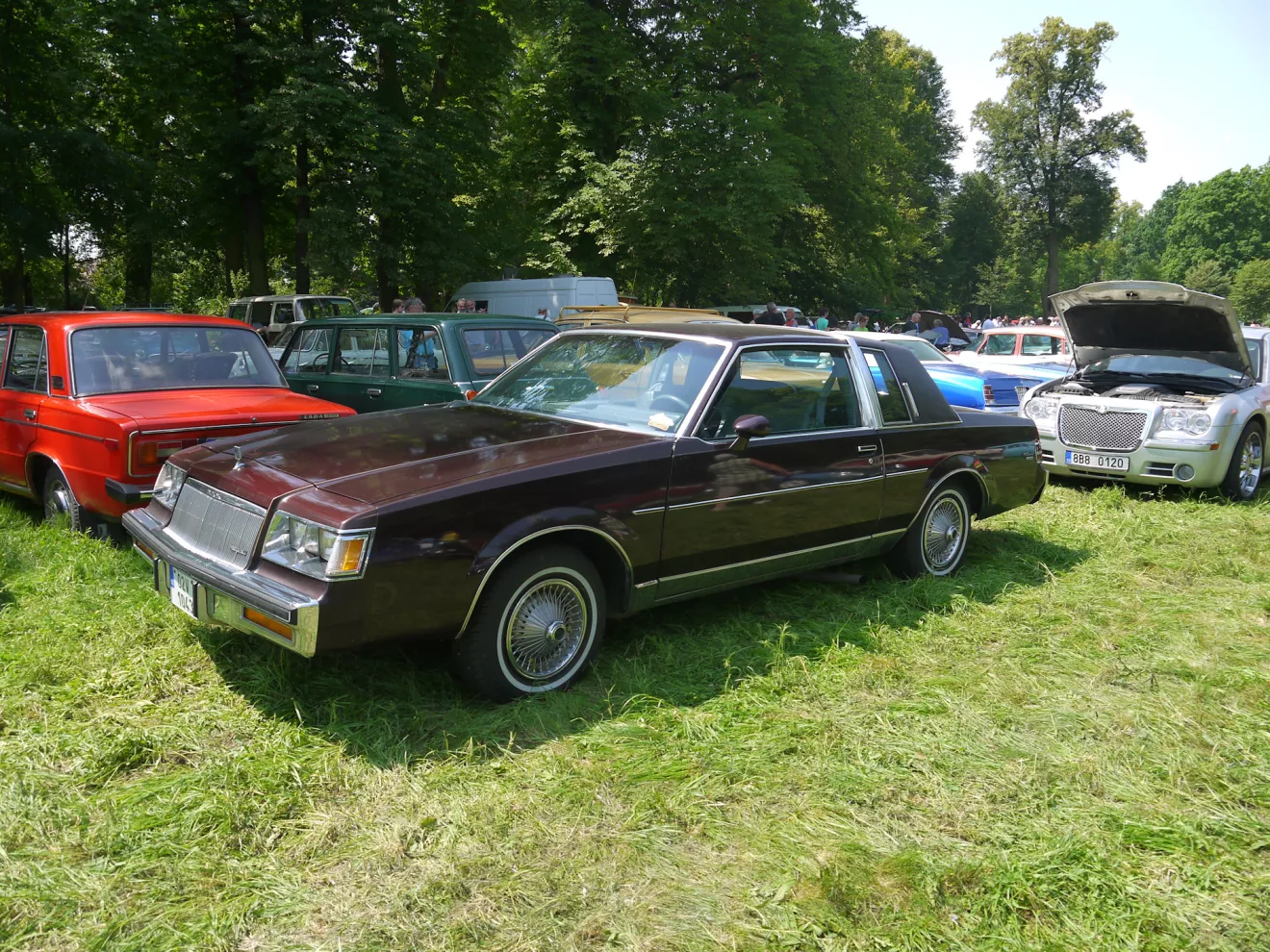 На фестивале было много интересных американских автомобилей. Редкие квадраты 80-х. Особое впечатление произвел Крайслер 300 бежевого цвета. Очень красивая машина.