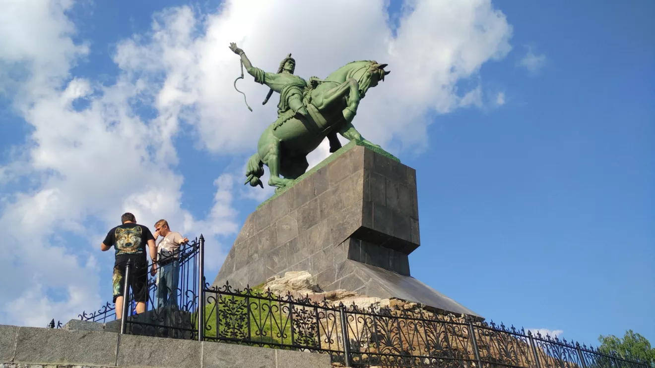 Перекусили и на набережную мимо фонтана к памятнику Салавату Юлаеву. Сейчас бы его сочли экстремистом и противником режима. Но дело было давно, поэтому он — башкирский герой.