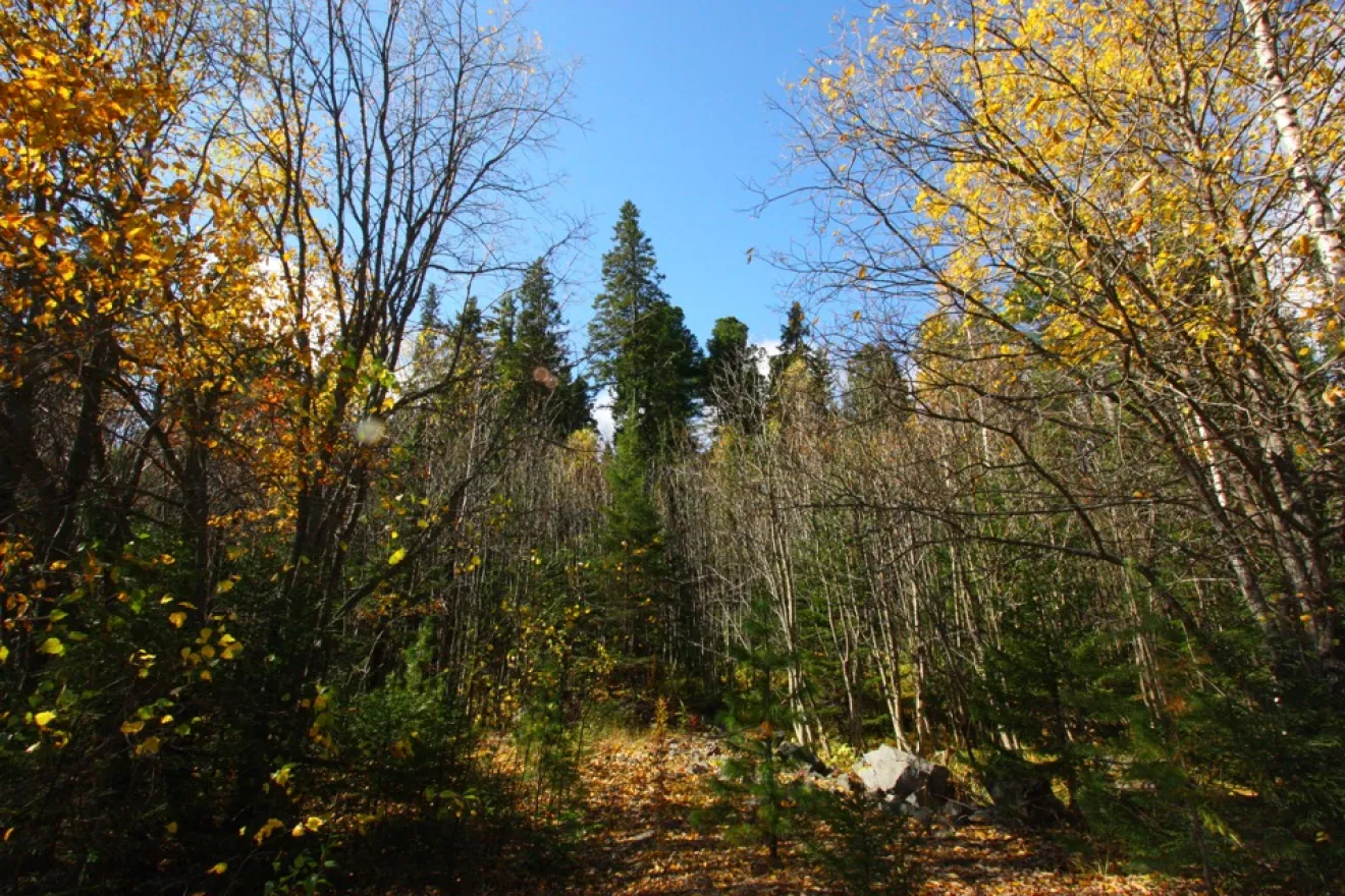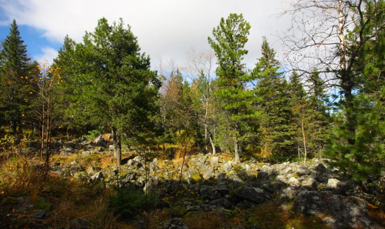 Дальше идти по тропинке в лесу. Кое-где уже просматривается курумник.