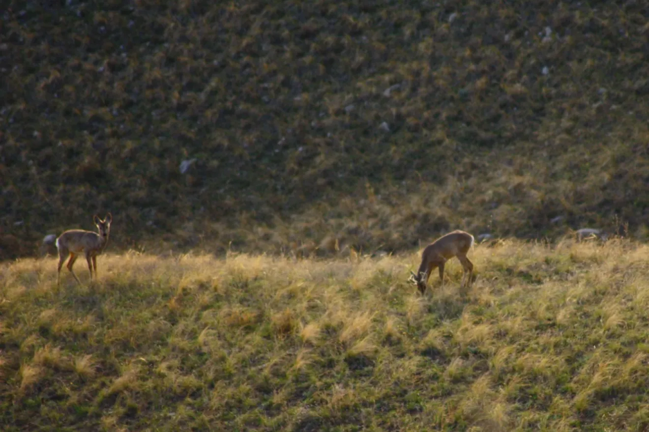 Поднялись на пару высоких холмов пешком, обозрели окрестности. Заметили трех косуль, бодро скакали по холмам.