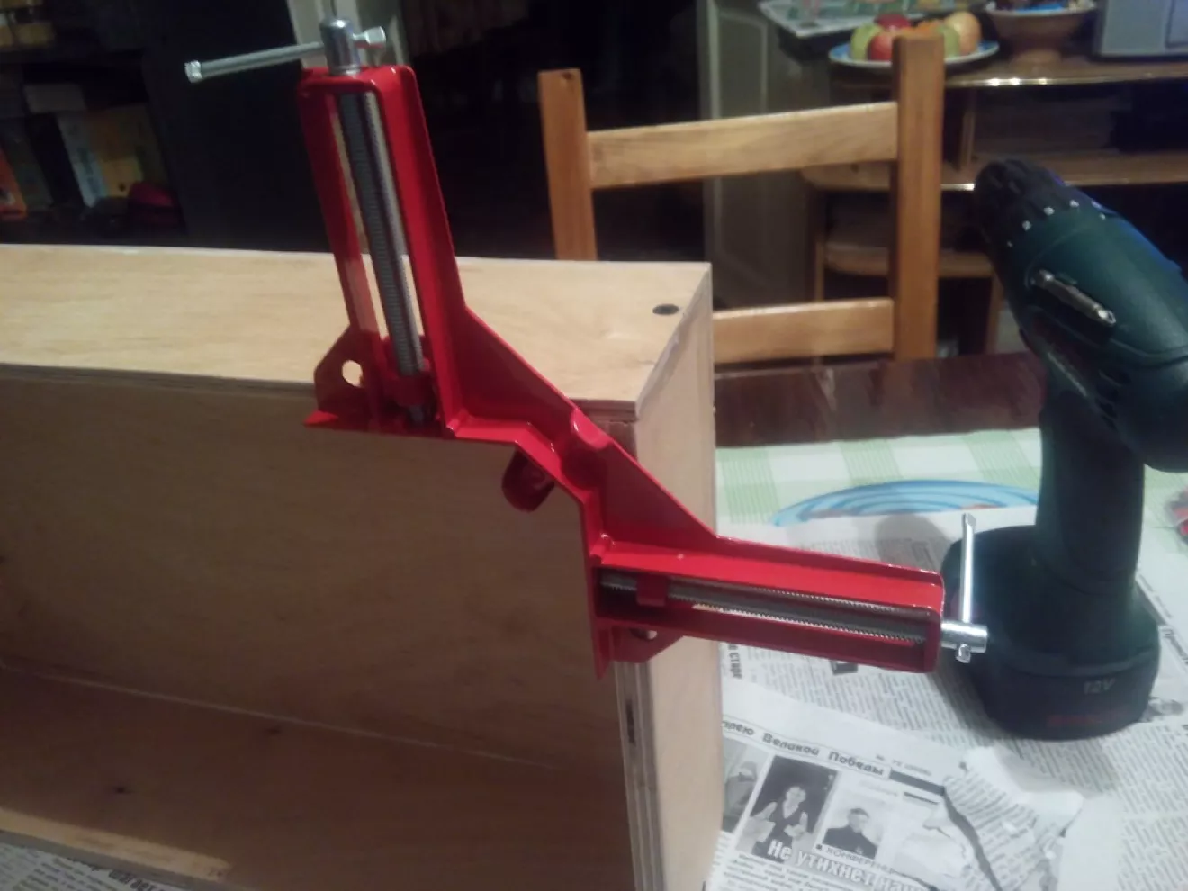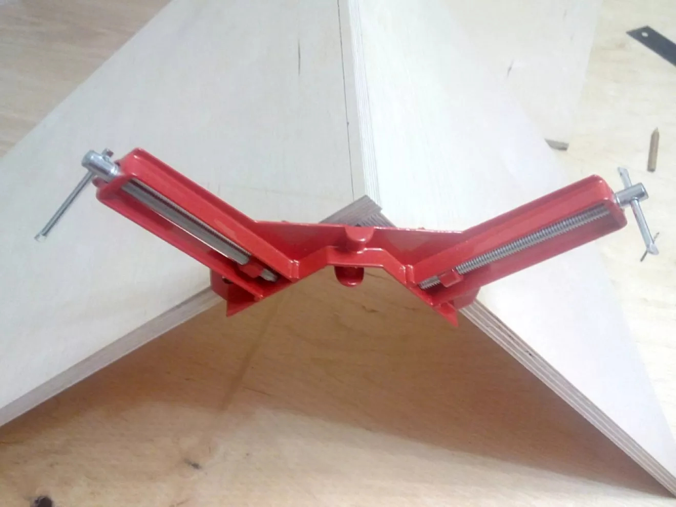 5. Кроме фанеры приобрел столярный клей, какой-то Super PVA, который при засыхании становится бесцветным. Также докупил две струбцины для фиксации соединяемых деталей под прямым углом.