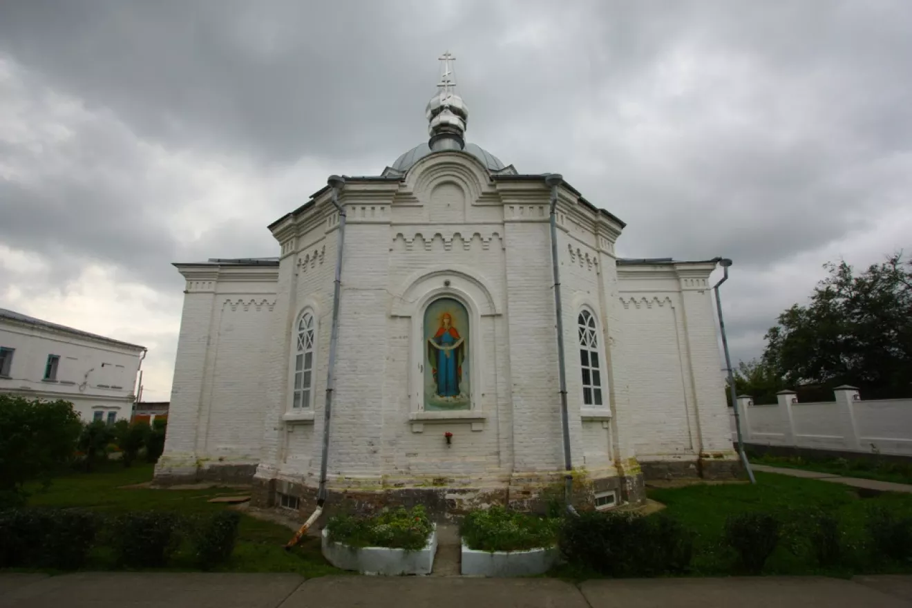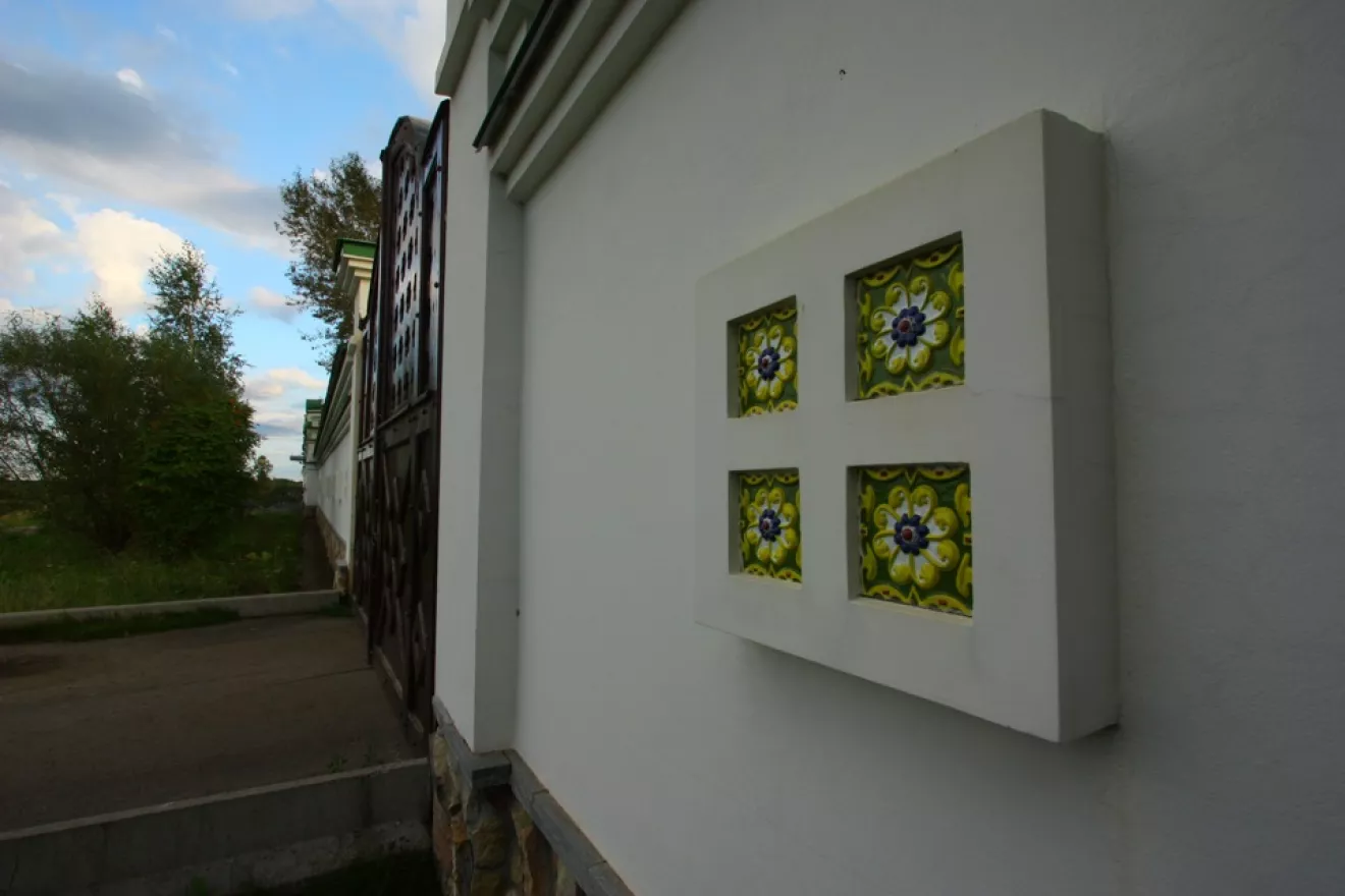 Небольшая церквушка на входе в монастырь с иконами из керамики.