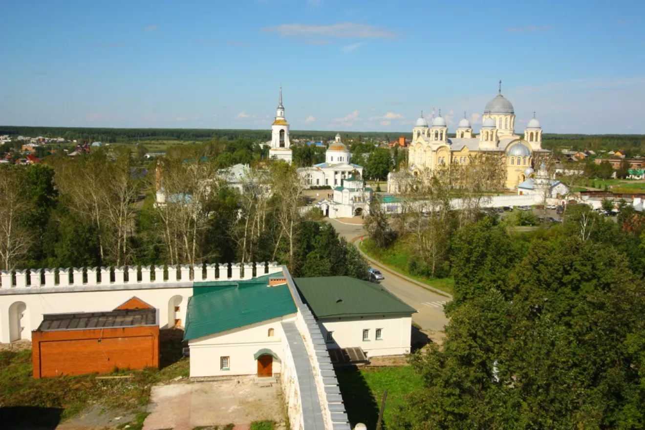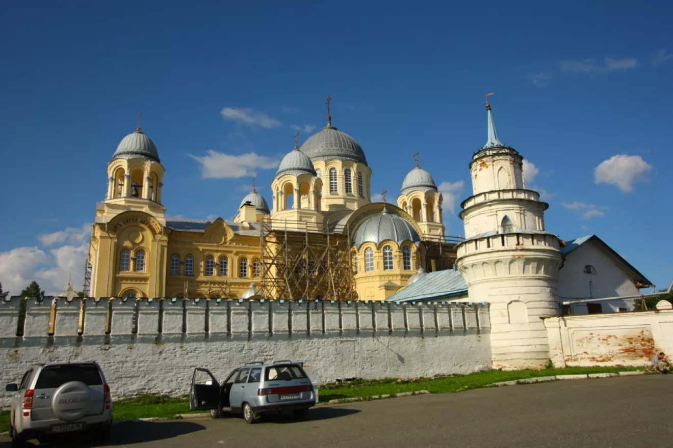 На обратном пути вновь заехали в Верхотурье посмотреть на женский монастырь. Он тоже у реки, выше по течению, адрес — Клубная 7.