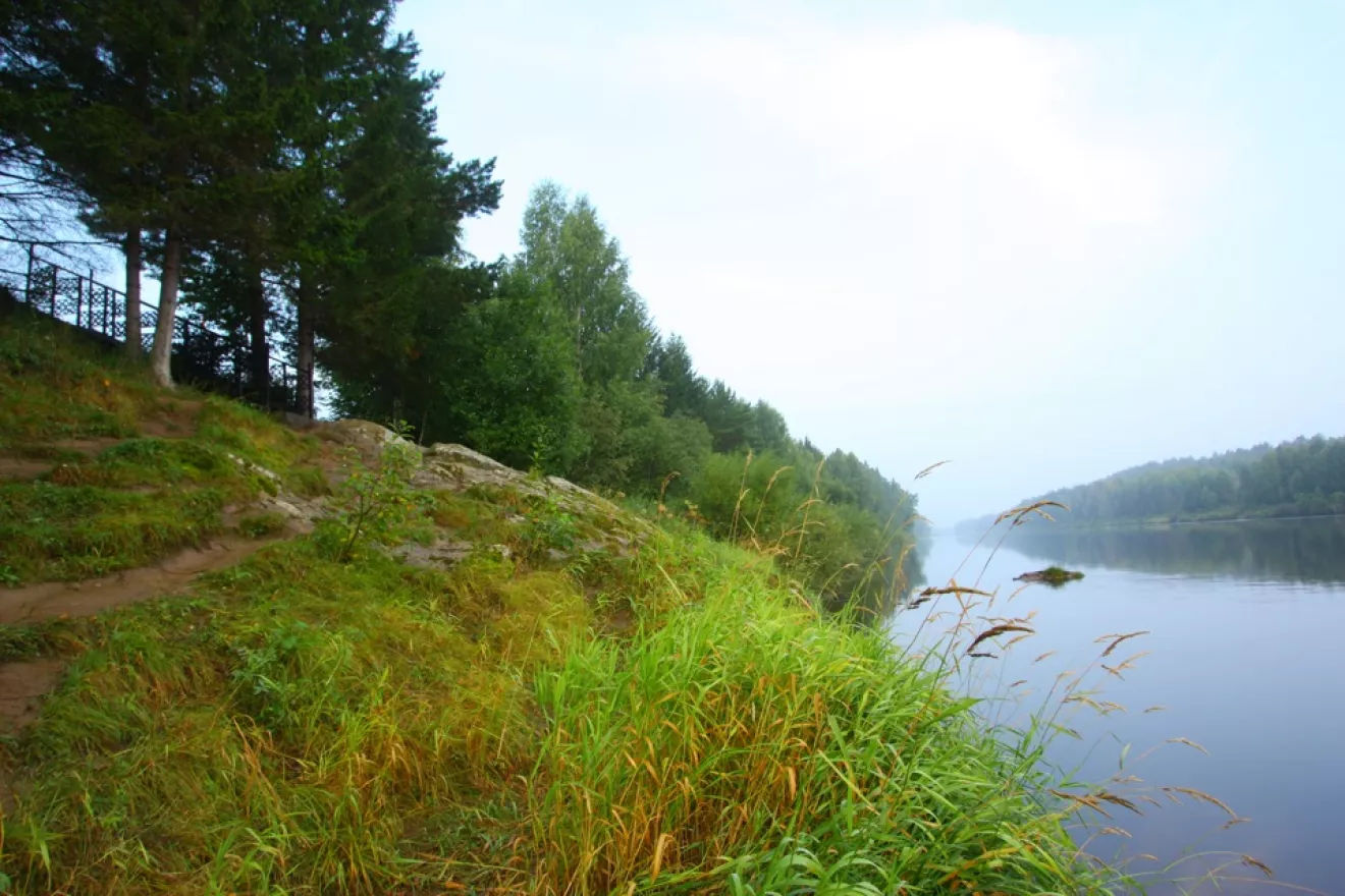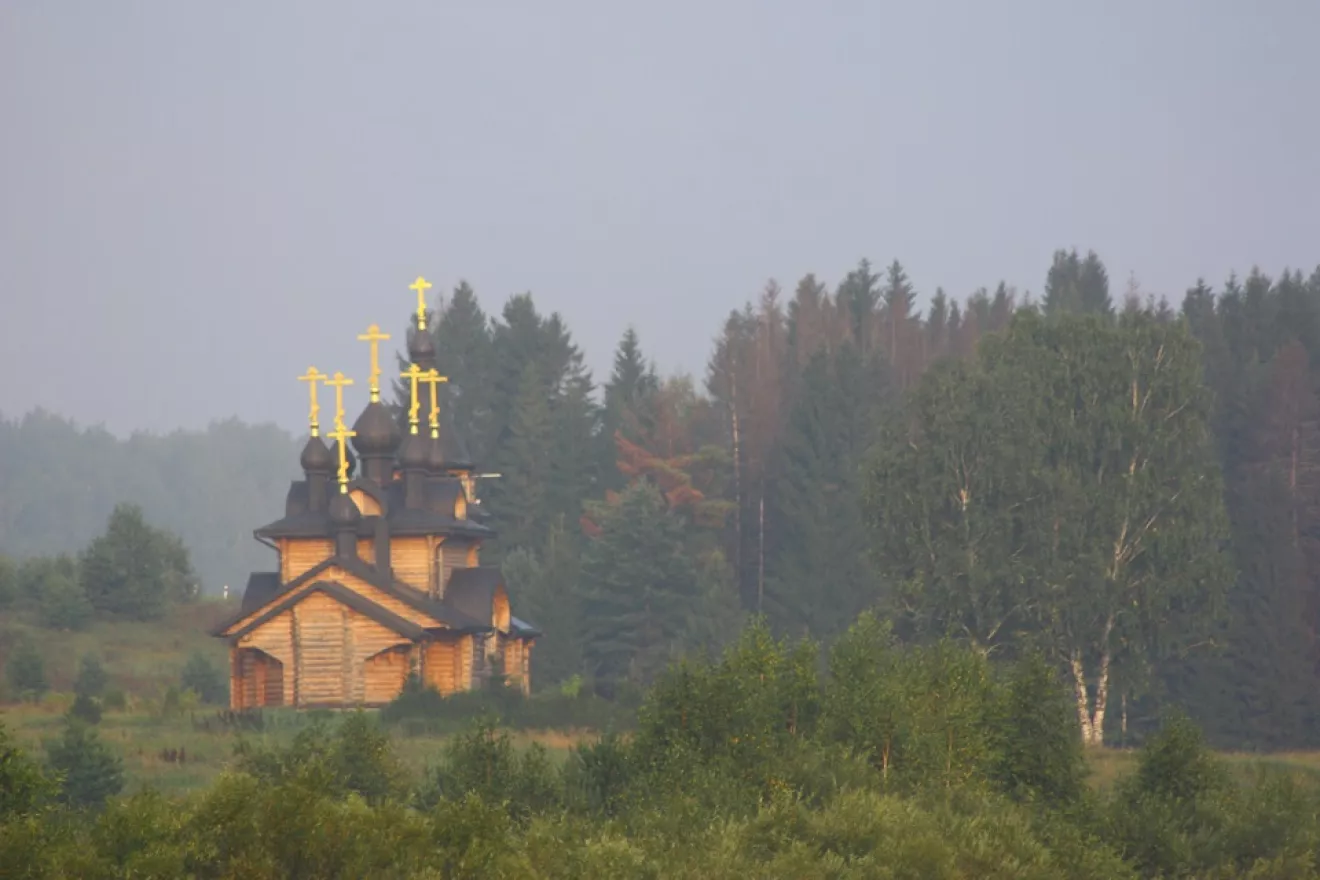 Остановились у очередной церквушки на берегу реки. Она была из дерева. Построена около камня, с которого ловил рыбу Саймон Верхотурский.