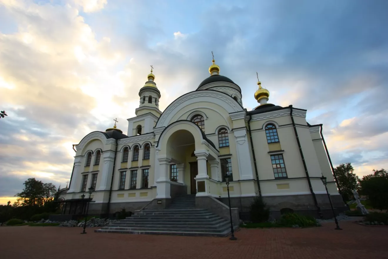 Интересные купола на соборе. Шарообразной формы, подобные католическим. Византийский стиль.