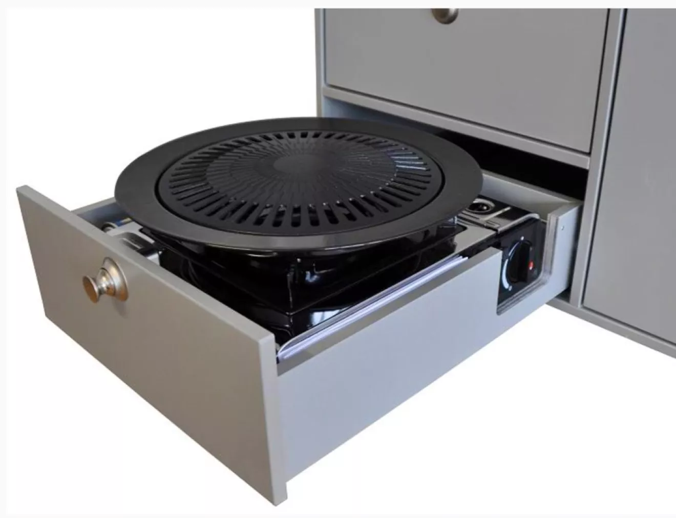 На портативную туристическую газовую плитку на баллончиках ставится гриль-решетка в форме круглой решетчатой тарелки.
