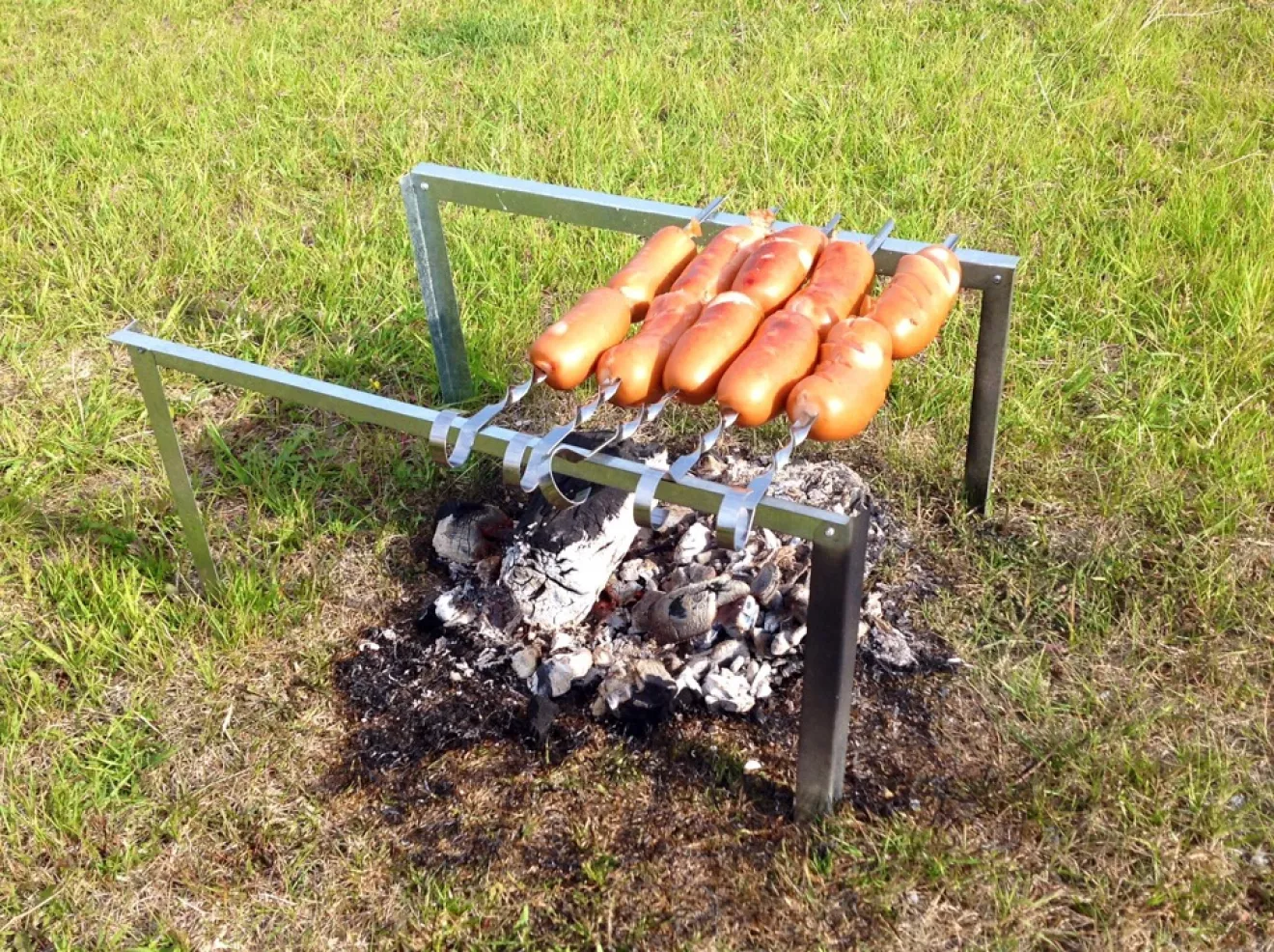 Внутри две направляющих, которые втыкаются в землю, и пять шампуров. Все просто!