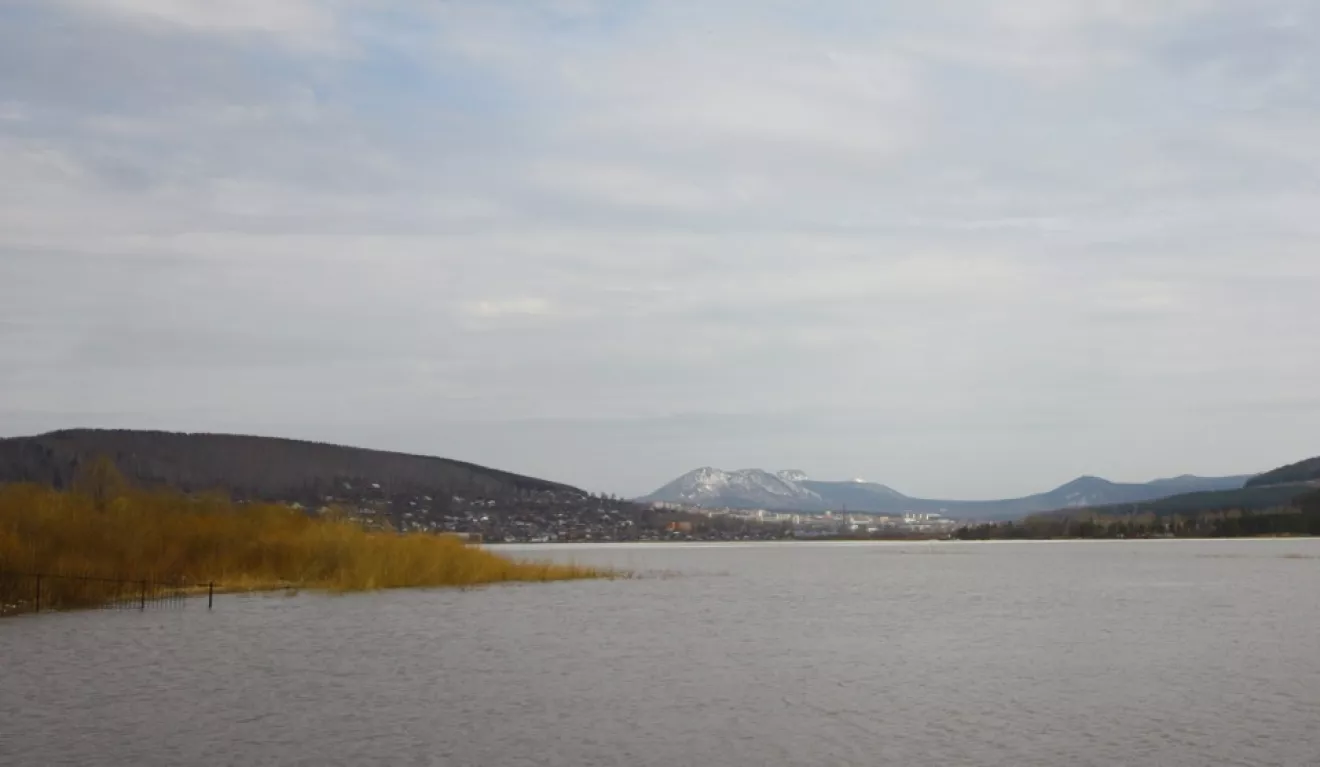 Вдали виднеются вершины гор нацпарка Таганай: Двуглавая сопка, Откликной гребень и Круглица.