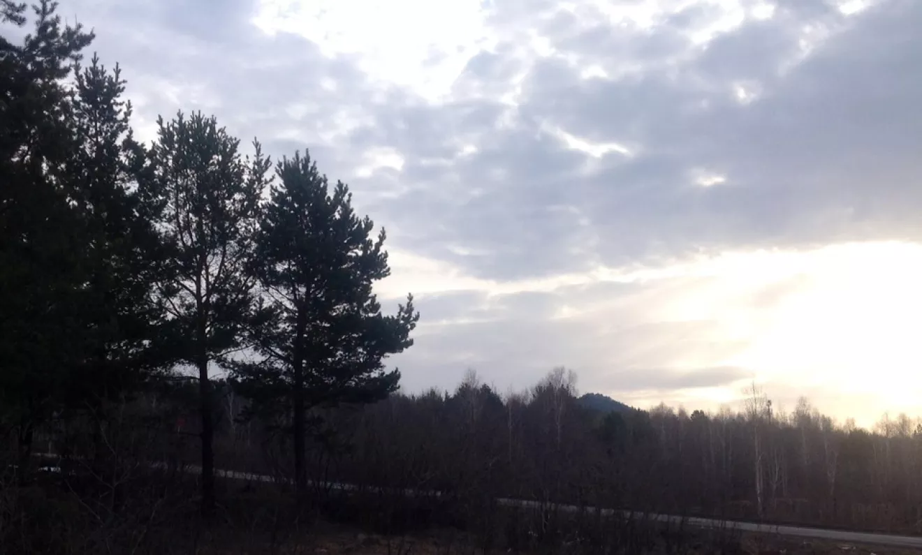 Троим достались комфортные места на мегаполке, а супруга расположилась на передних сиденьях поперек. Утром проснулись, солнце всходило прямо над сопкой. И сразу же небо стало затягиваться тучами.