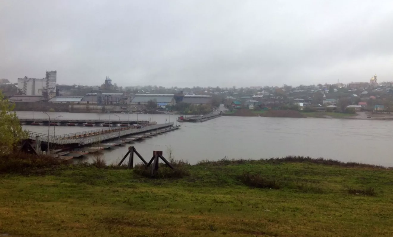Проезжаем через Мишкино. Возле Баженово поворот на Бирск. Используем второй (южный) въезд (469 км) и проезжаем сквозь центр города Бирска до переправы через реку Белая. Цена проезда 50 рублей. Летом по понтонному мосту, зимой по льду.