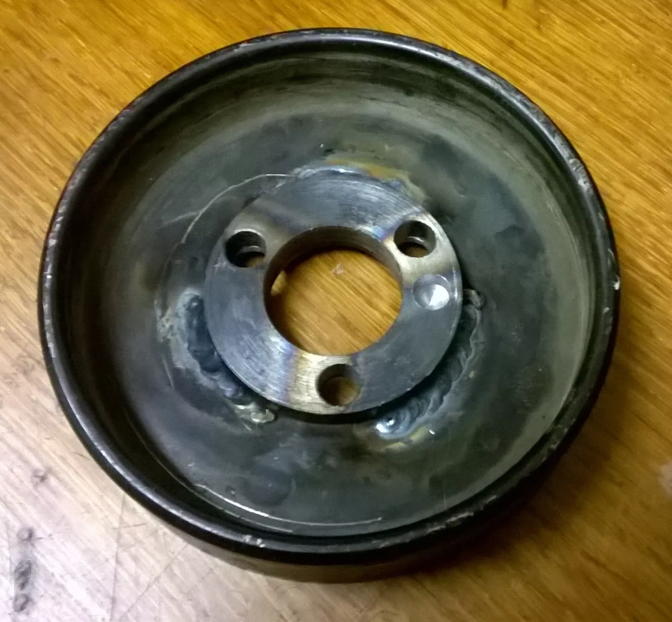 1. Триггерное колесо для ДПКВ — изготовлено отдельно, установлено, приварено и отбалансировано на родной шкив от родного мотора 1.8 (75 л.с.). На мотор 9А установлено навесное от родного мотора 1.8(75 л.с.) — генератор, насос ГУ-руля соответственно с приводными шкивами под многоручейковый ремень.