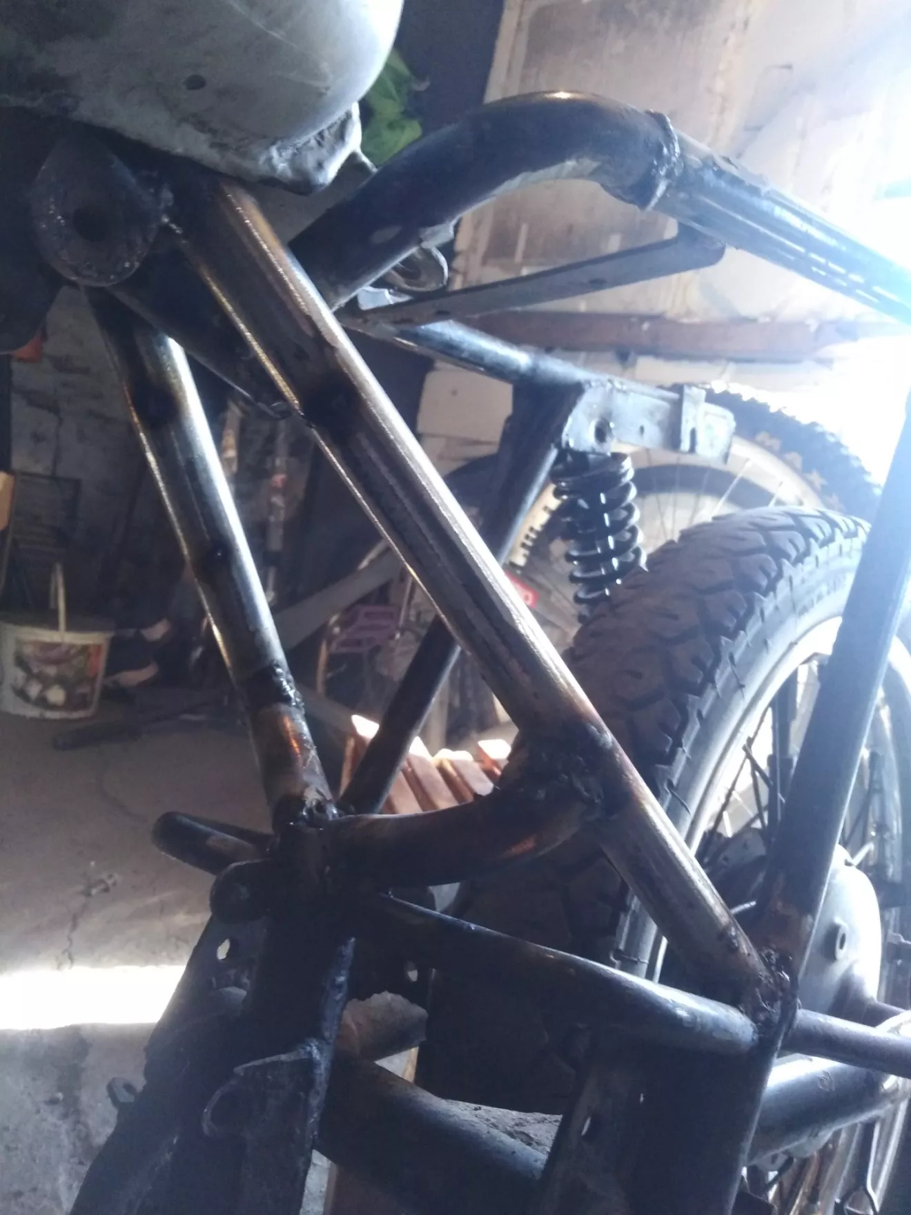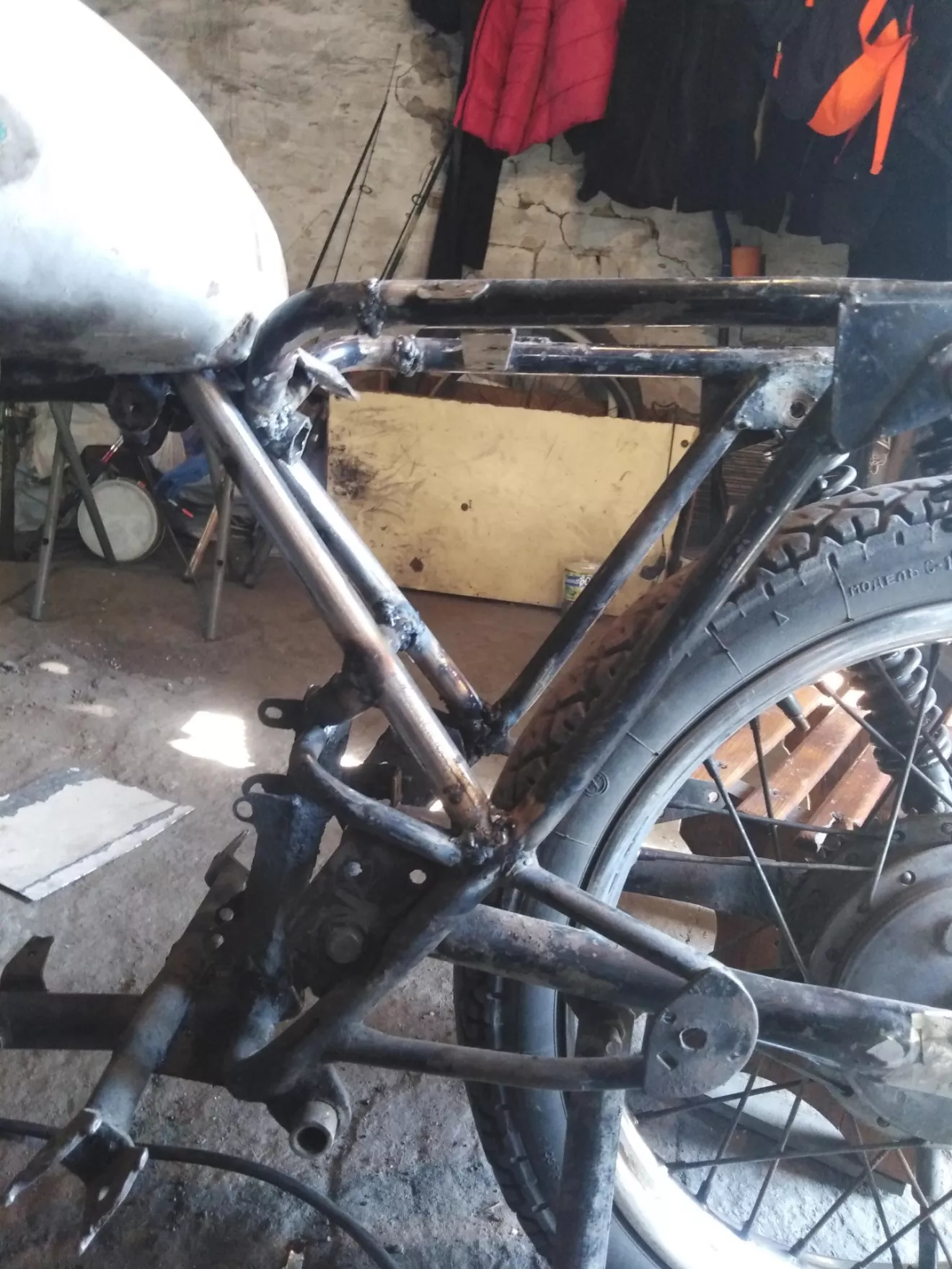 Перенёс крепления амортизаторов и начал пилить раму