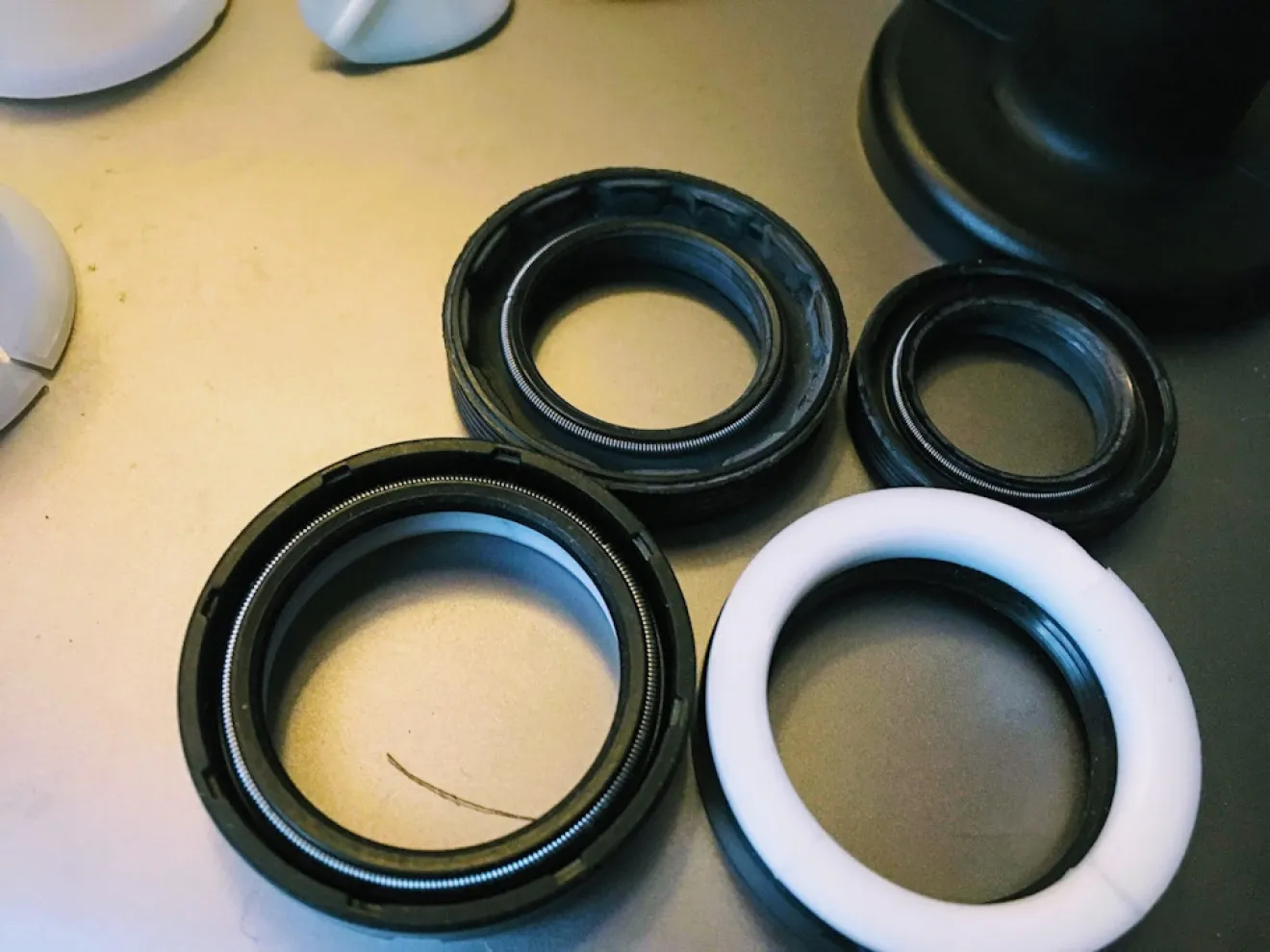 На фото пример того, как выглядят фирменные сальники рейки ZF, во первых они с пружиной, во вторых по мимо резины там есть и поликапроамидовая (капролоновая) часть, соотвественно ни в каких кустарных условиях такие сальники сделать нельзя!