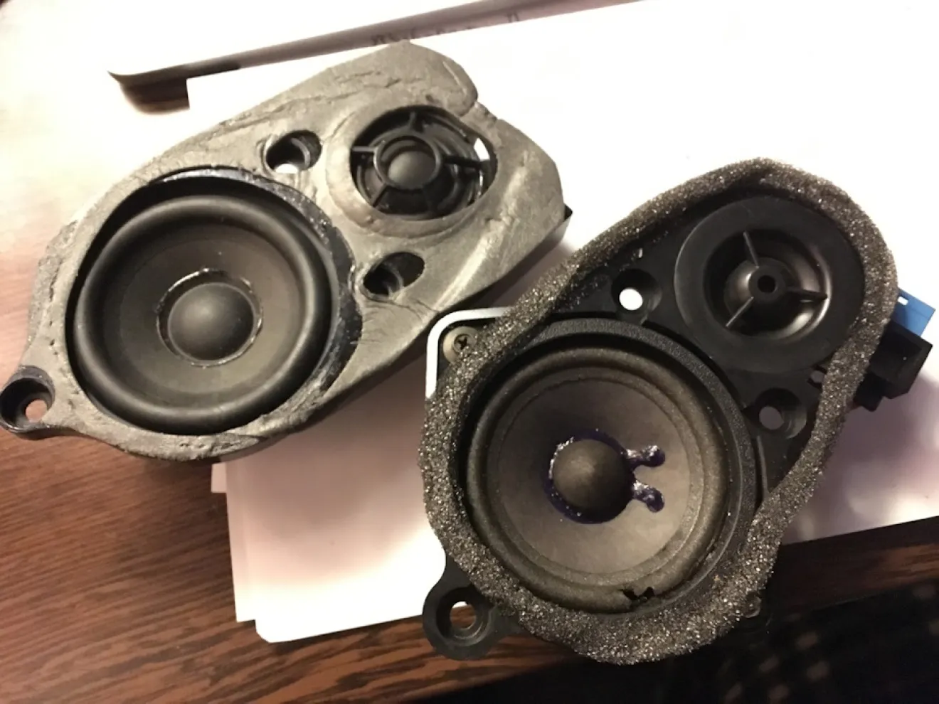 У e46 есть три варианта заводской аудиосистемы. На фото разница в динамиках резмещенных в дверных ручках купе/кабриолета. Слева HiFi, справа Harman Kardon. Высокочастотные дианмики у HK включены через резистор, и имеют другое исполнение, среднечастотные динамики у HK имеют больший магнит.