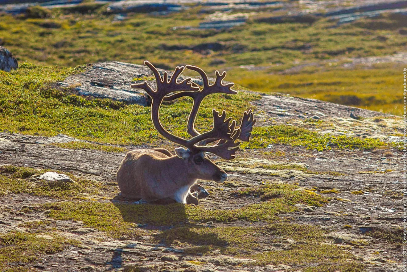 А вот так, Олени спят, попутно греясь под лучами низкого северного солнца.