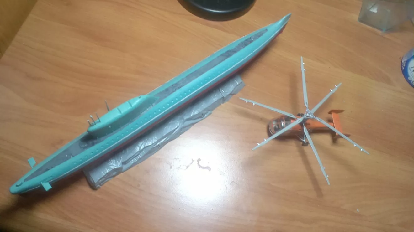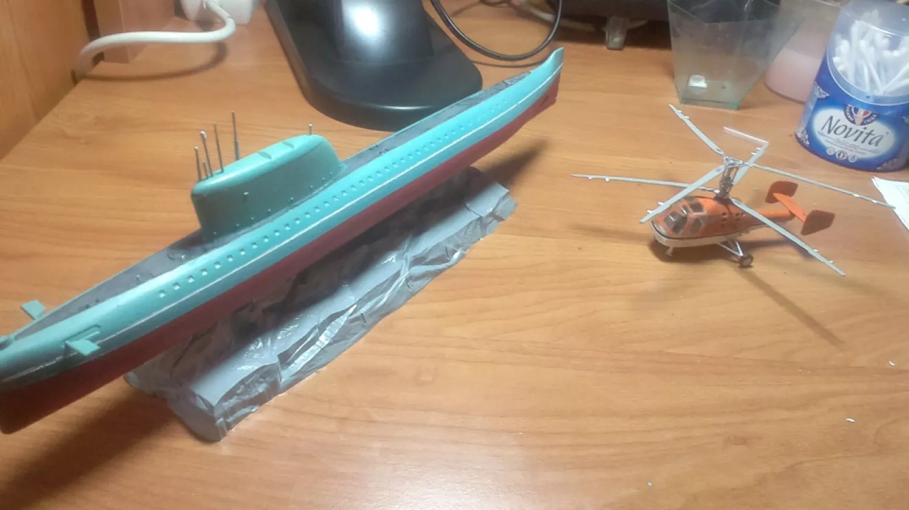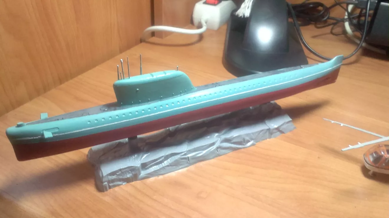 Вторая модель собирается параллельно, также для "набивания руки" — ну и, никогда в жизни подлодки не собирал, тем более с покраской: