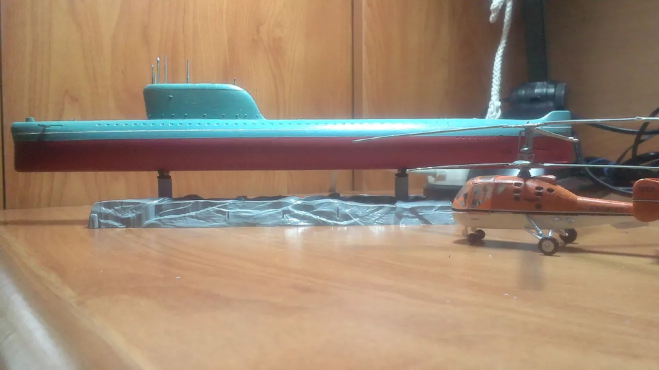 Подводная лодка К-19 от ZVEZDA в масштабе 1:350. Отлив более чем достойный, деталей мало. Но, очень большая (как для меня, в этом — новичка) площадь покраски, плюс стыковочные места — тоже не без косяков — но уже вникаю в нюансы. Модель в собранном виде 33 см.