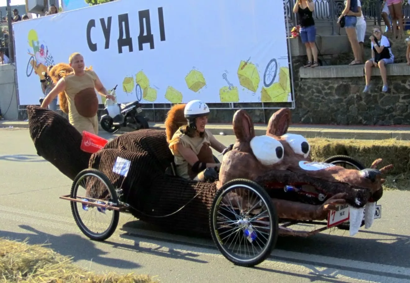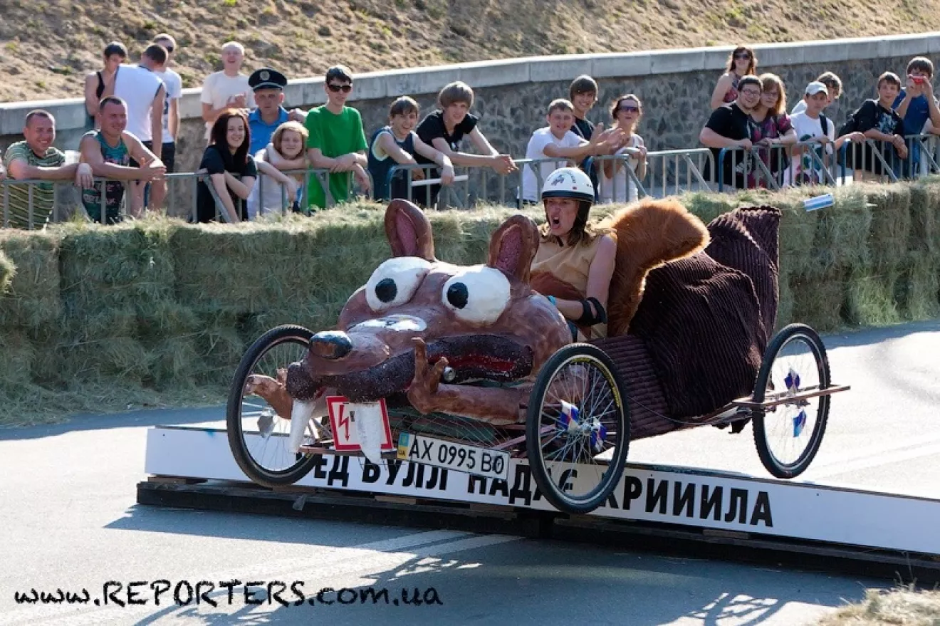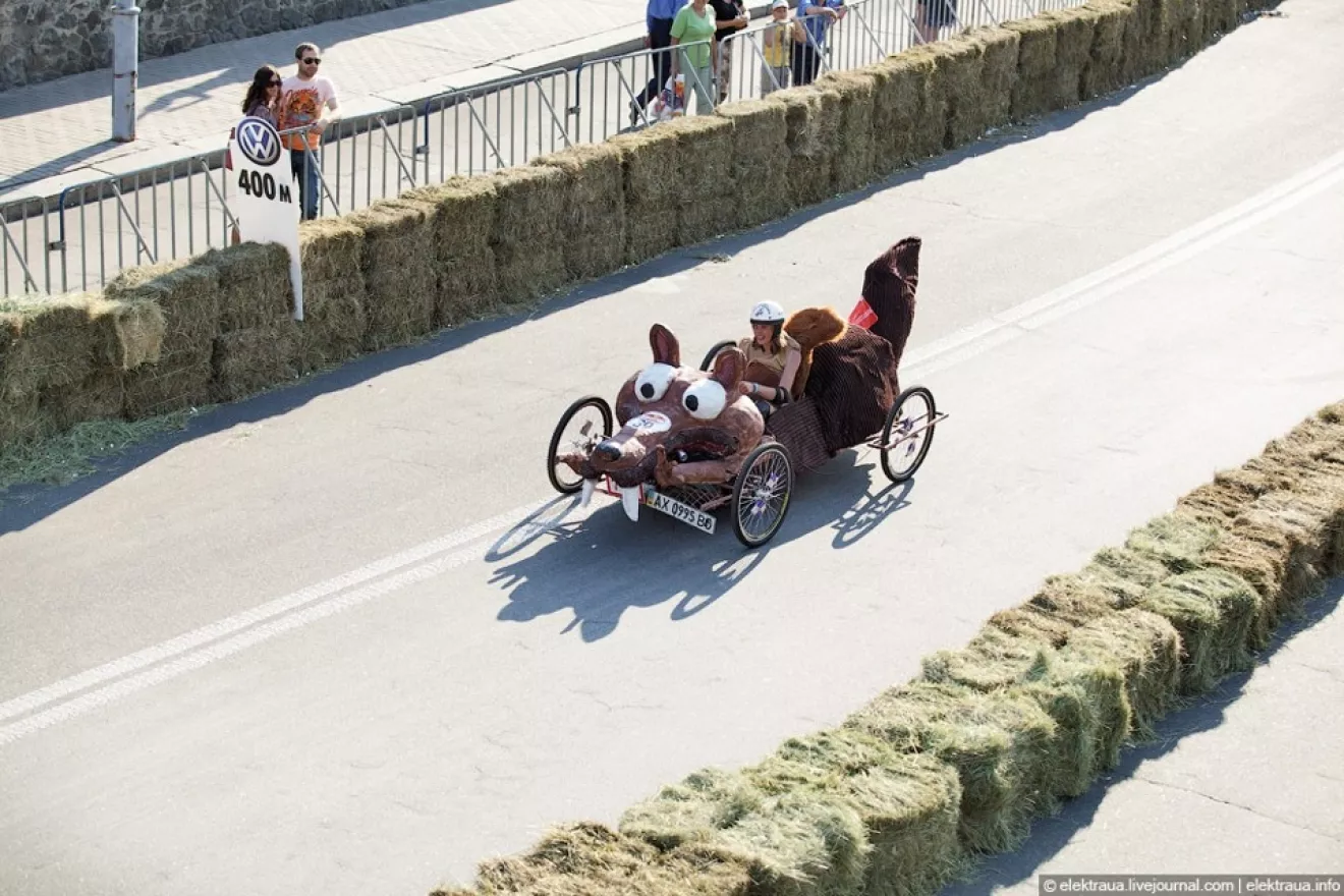 Принять участие в этой сумасшедшей гонке может каждый, кто готов создать свой неповторимый автомобиль, приводимый в движение без мотора, и прокатиться с ветерком по специальной трассе!