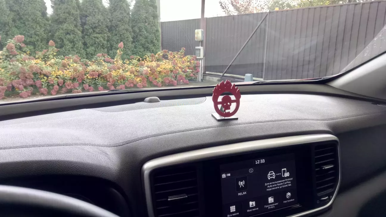 Своей первой моделью выбрал Знак отличия Несмертного Джо из фильма Безумный Макс дорога ярости, смоделировал его в качестве декора в салон автомобиля, сделал тестовую 3д печать.