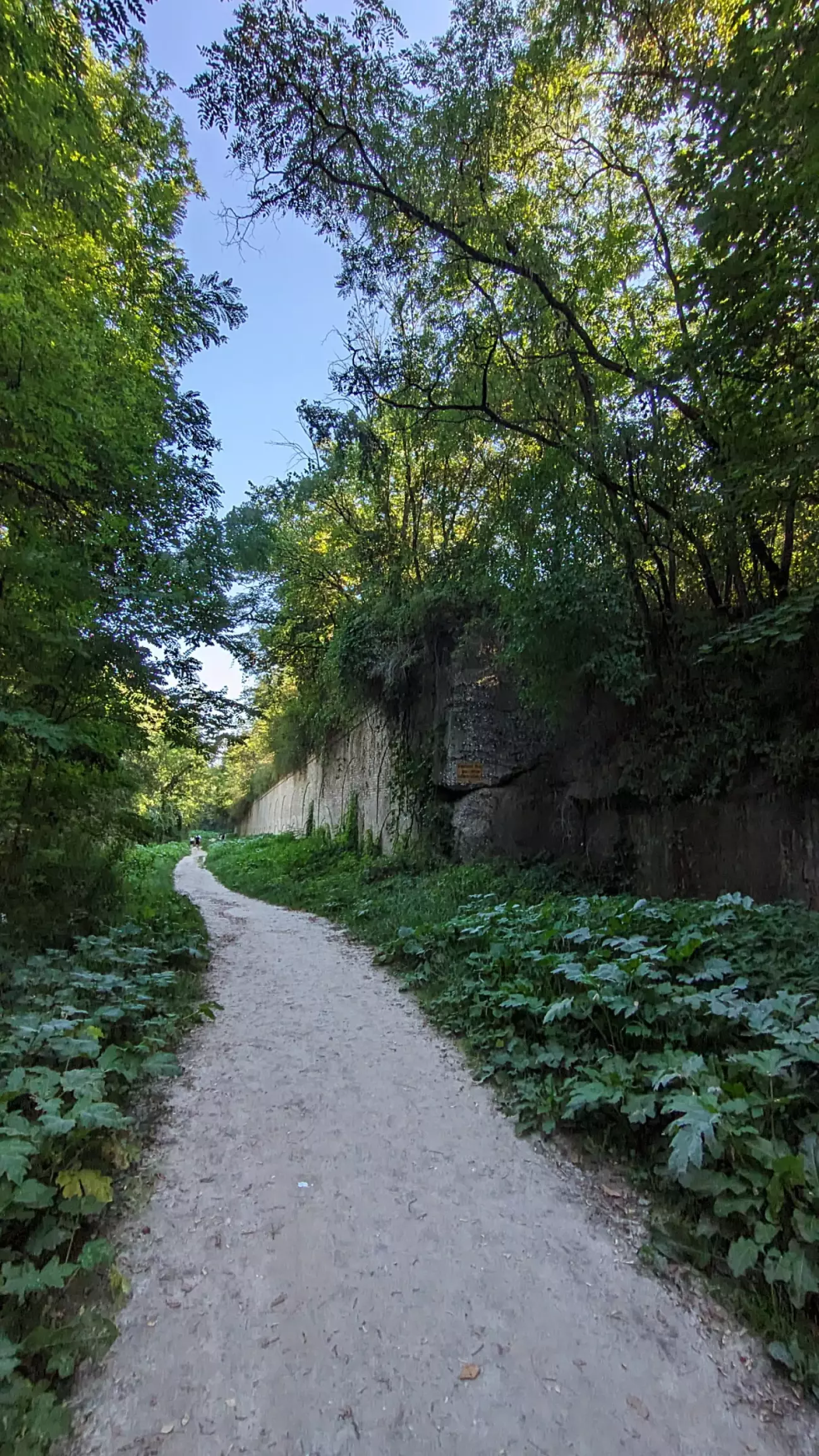 Не дуже довга кривувата гравійка, трохи затягнута через надто обережного водія гольфа попереду, веде до цілі. Паркуюсь серед машин, а далі стежкою, вздовж довгого, довгого, довгого муру: