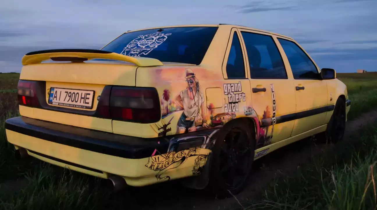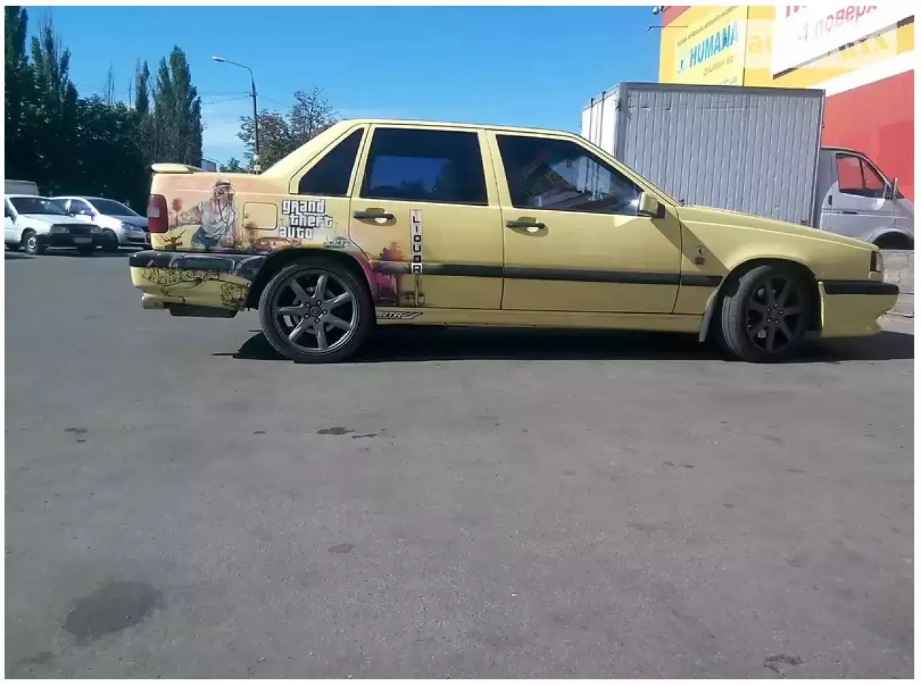 Как-то в 2018 году просматривая объявления на Авто-Риа, увидел в продаже данную пушку-ракету желтого цвета с очень красивой аэрографией на кузове "Grand Theft Auto". Вольвушка продавалась в Киеве, и как на зло, у меня не было нужной суммы на ее покупку. Машину купил кто-то другой.