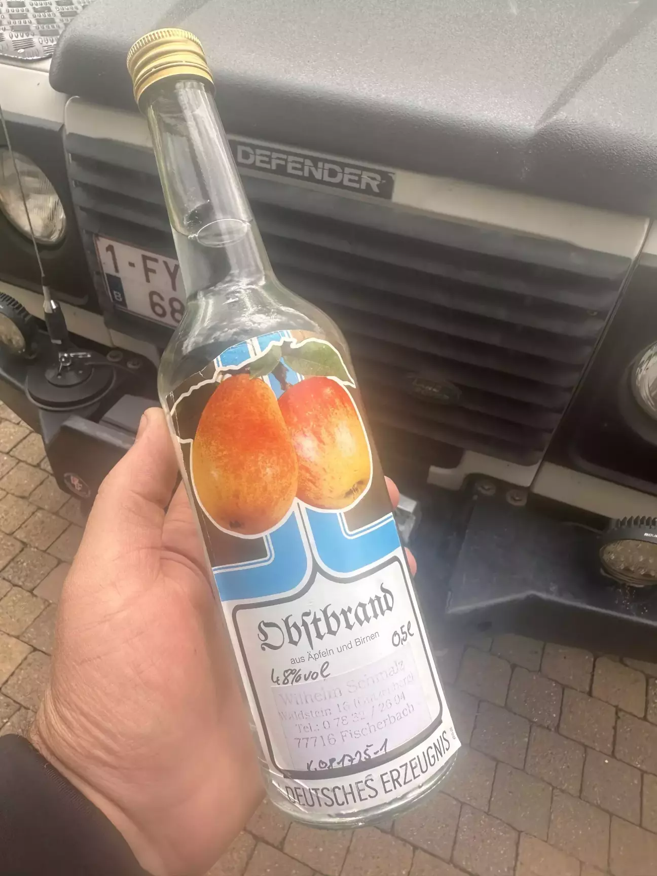 Приїхали ми із шефом до клієнта виконати певну роботу. Побачили що в нього перед будинком не простеньке авто. Клієнт вийшов ми обговорили питання по роботі і ми приступили. Пізніше він виніс нам каву та печенька, тут прийнято в 9:00 робити робочу паузу. Ну от і пішла розмова про його авто та подорожі, ой де він тільки не був із своїм залізним конем, розмова дійшла до того, що в 2021 році він був у Карпатах, почав показувати нам різні мальовничі фото на яких хизується його білий Defender. Він розказував що відвідав не одну країну із гірською місцевістю, але Карпати та їхніх жителів він ніколи вже не зможе забути. Розповідав, що йому дуже запамʼятався смак місцевої кухні, а особливо смак бринзи та самогону. І вже коли пішла розмова про алкоголь розповідів було ще більше, його вразило що місцеві хлопи зранку тягнули по сто грам самогону а потім приступали до роботи. Каже мені ти собі представляєш я із своїми друзями в яких авто Prado, Defender, Patrol, ледве видерлись на певний пагорб, зупинились щоб перепочити, а місцевий мужик на «camion»-вантажівка (думаю він бачив Урал або ГАЗ-66) проїздить повз нас немов рівною дорогою 🤣(я в ту мить подумав що той мужик ще й випивший був 108% 🤭🤣😂). Мій шеф Себастіан каже цьому дядьку: -«доречі Василь із України», дядько протягнув мені руку 🤝, і каже по закінченню вашої роботи я маю презент для тебе, і він привезений мною із твоїх країв. 🤔