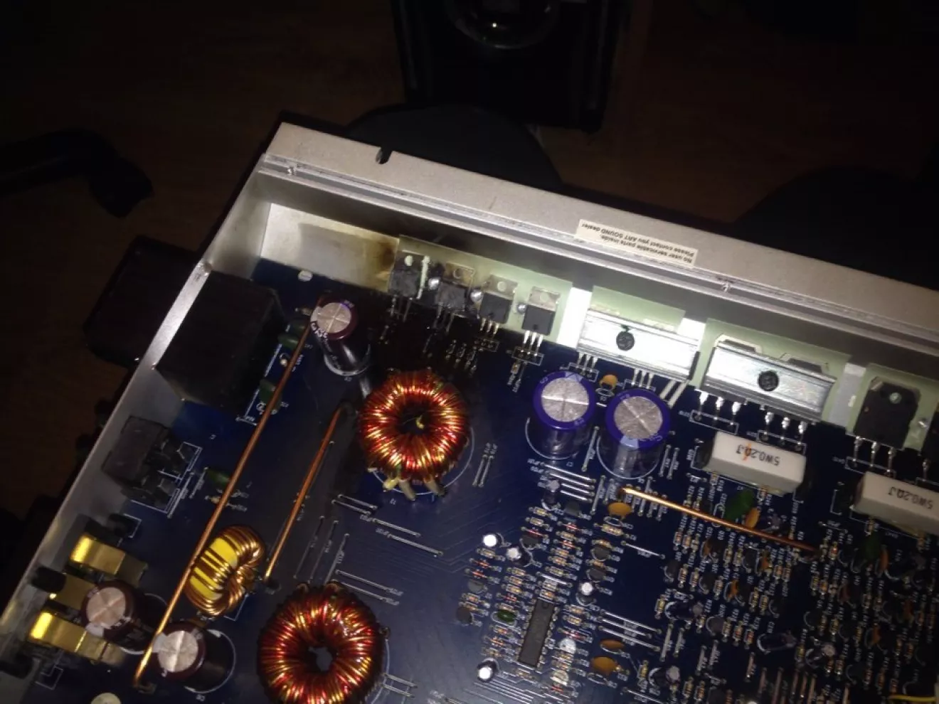 Вот такое чудо мне попало в руки на реанимацию… Не знаю реально ли будет его оживить но вся проблема в сломанной плате возле выходов на колонки и КЗ…