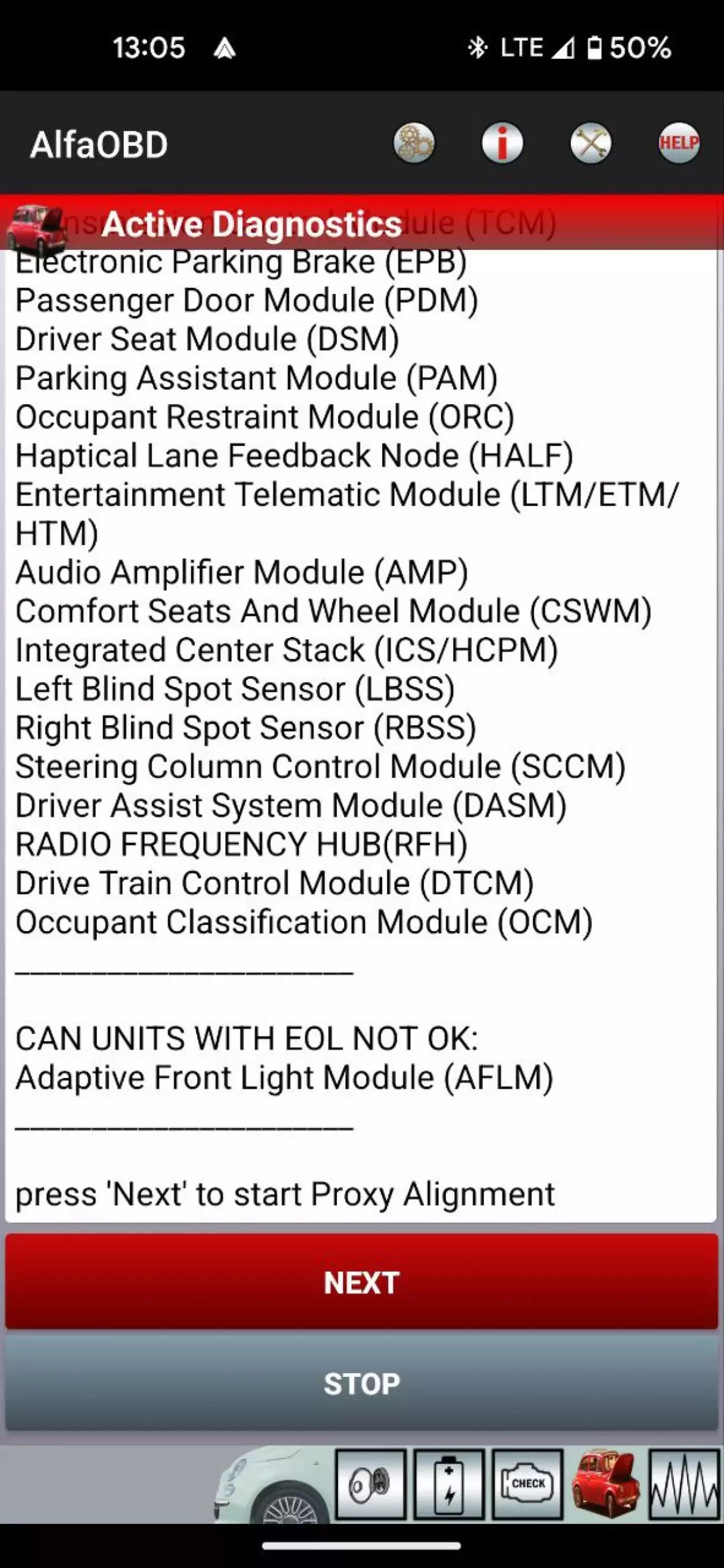 AlfaOBD, JScan, і, схоже, BCM, наразі не можуть спілкуватися з цим модулем. На жаль, немає доступу до офіційного сканера, яким можна було б перевірити це однозначно. Можливо, варто пошукати у поляків блок 68290302AC - вони коштують недорого, а якщо йому ще не потрібен передній датчик, можна ще й заощадити.