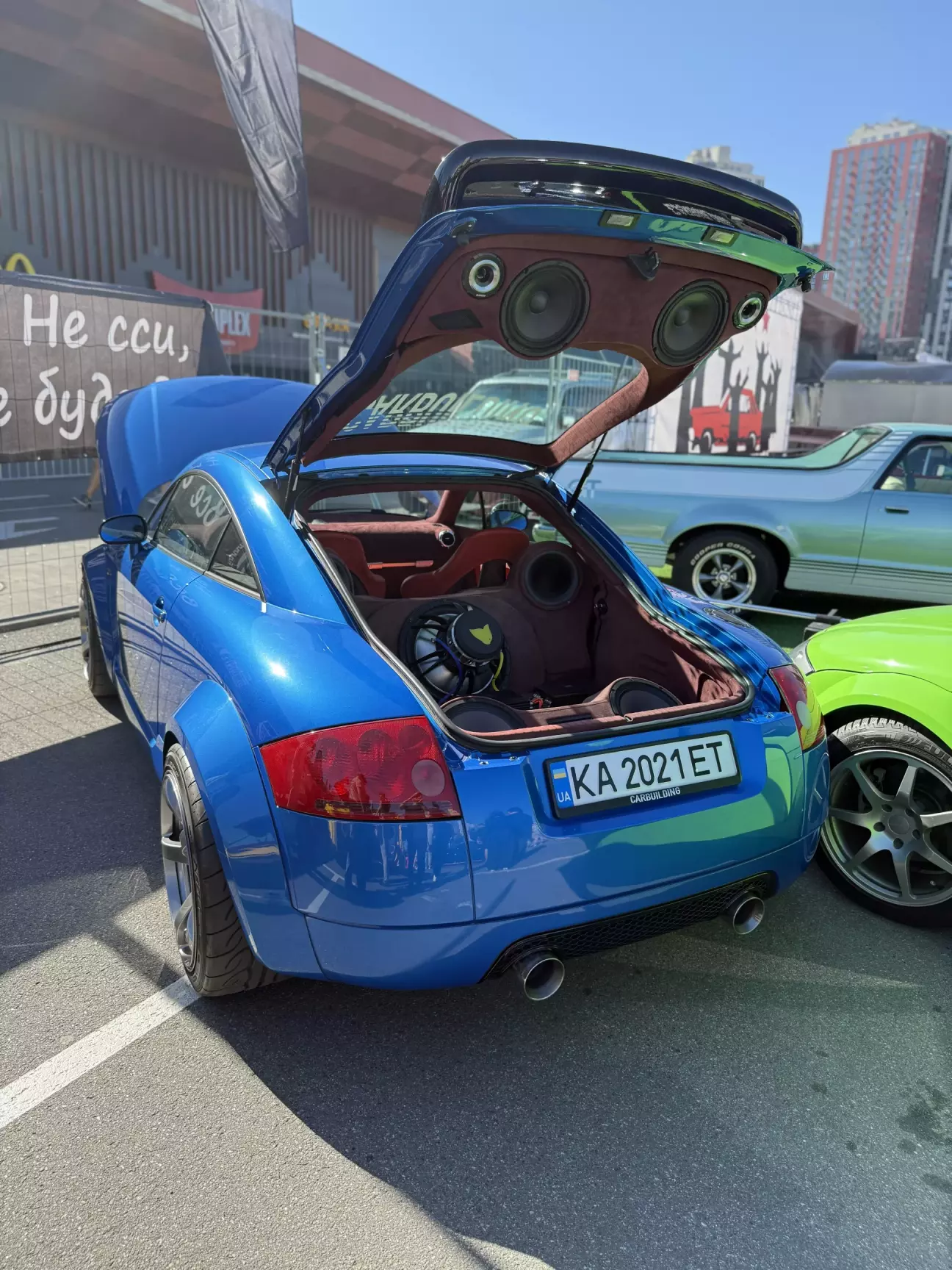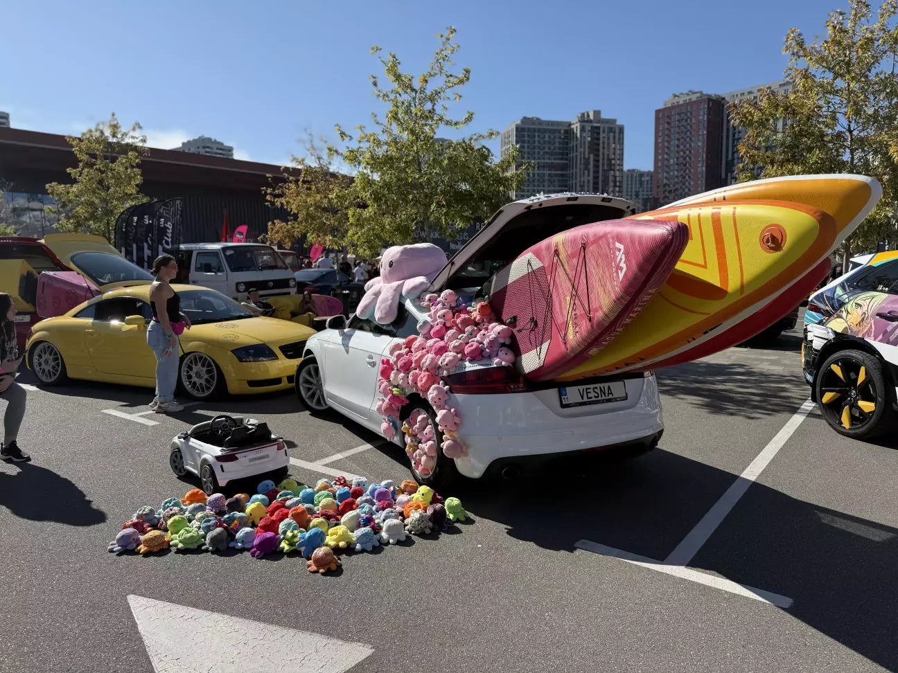 TT Club UA не перестає дивувати своїми презентаціями на кожному фесті 🤩 Також на фото можна побачити дві Audi TT, що демонструють неймовірні можливості багажного відділу даних авто. Біла 8J та надзвичайно гарна жовта - 8N.